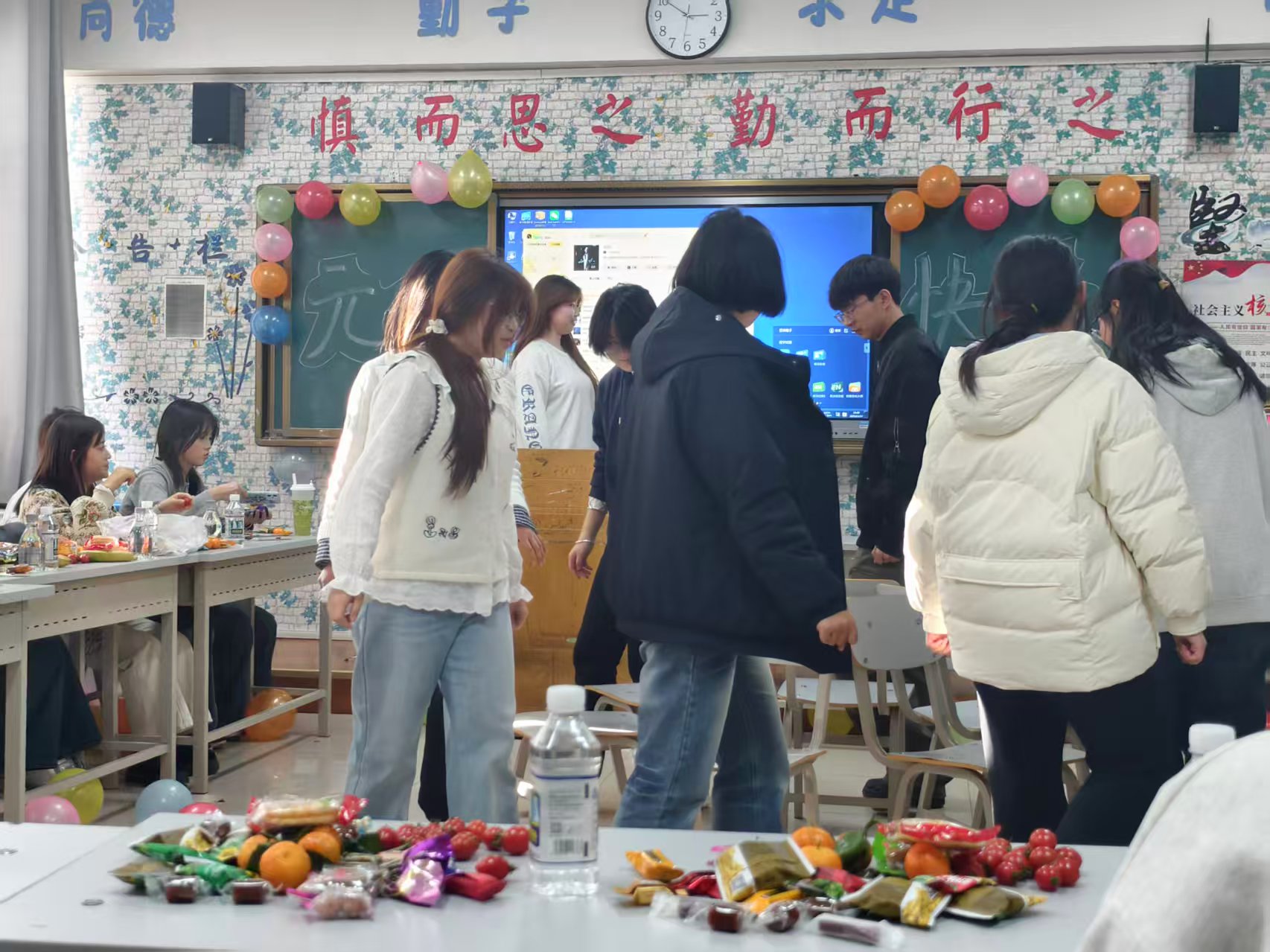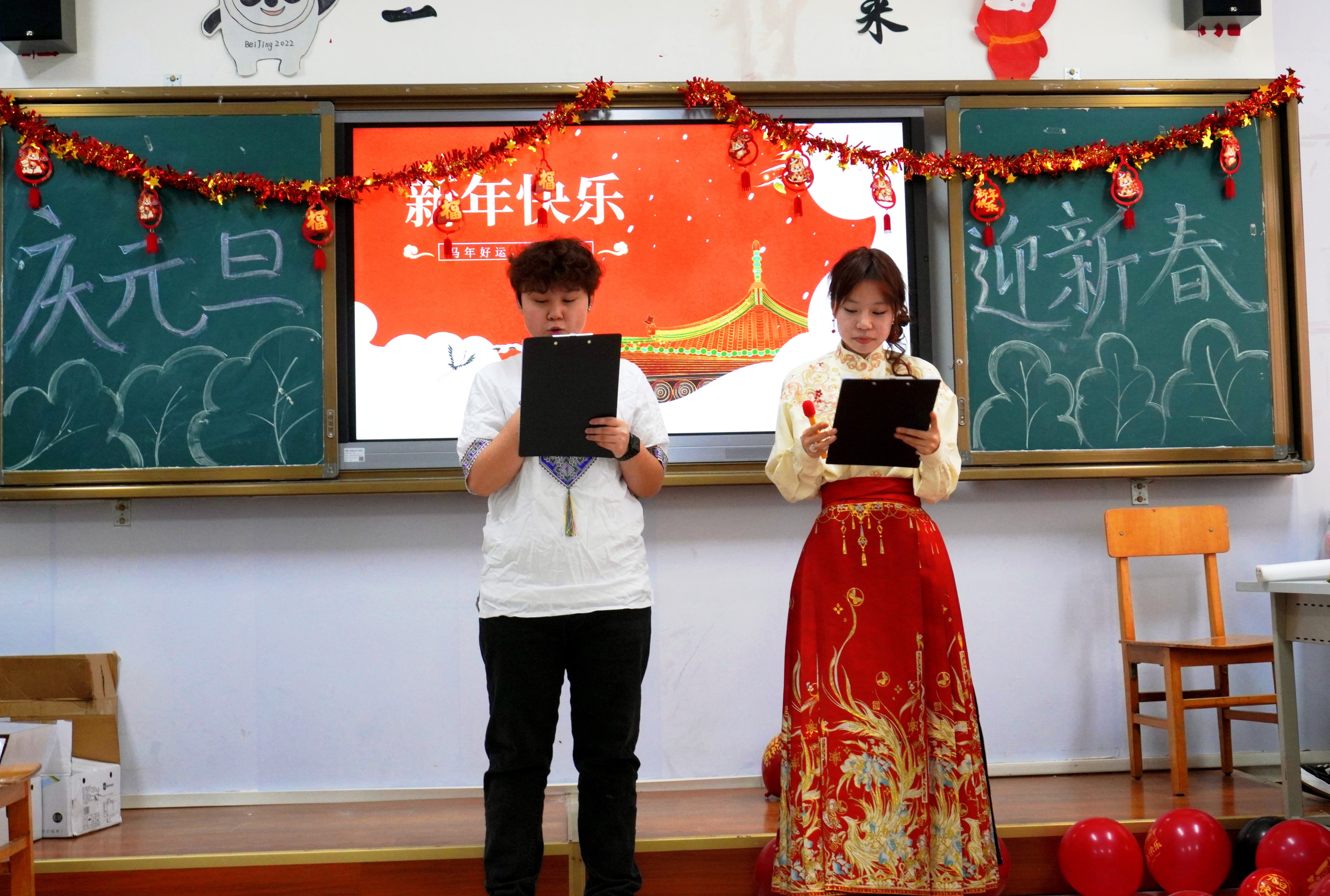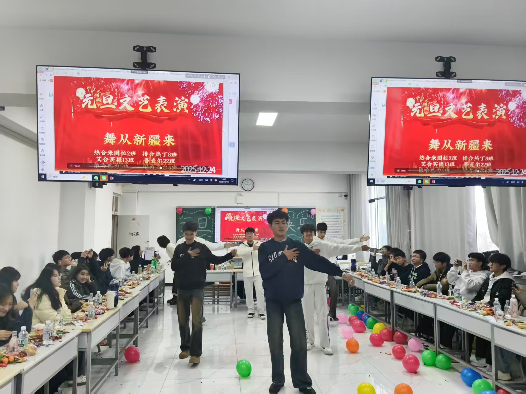 各班教室之中,彩球错落摇曳,墙壁上“元旦快乐”的字样明艳夺目,满室皆是欢乐气息。同学们精心筹备了一系列丰富的节目,有男女声独唱、民族舞蹈、情景剧、民族乐器演奏和温情满溢的集体合唱等韵味十足的文艺表演,每一项活动都如织锦之线,将各族学子的心紧密相牵。