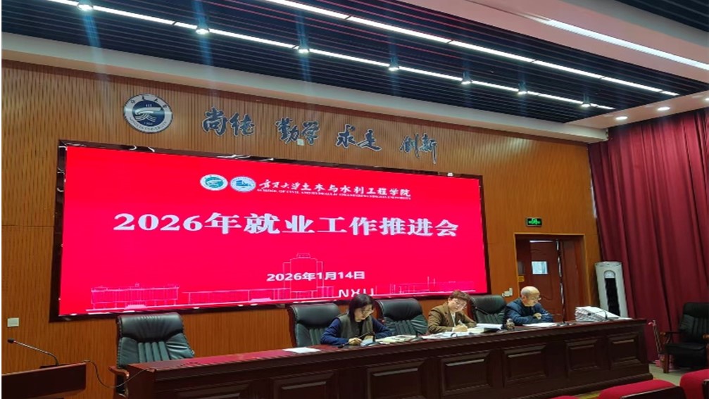 【宁夏大学新闻中心讯 土木与水利工程学院】1月14日,土木与水利工程学院召开全院教职工大会暨2026届毕业生就业工作推进会和2026年就业工作专题推进会,学院领导班子成员、各系主任、系副主任和毕业班班主任参加会议,学院党总支书记尹娟主持会议。