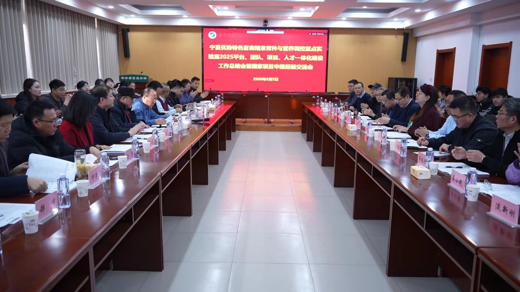 【宁夏大学新闻中心讯 动物科技学院】2月5日上午,宁夏优势特色畜禽精准育种与营养调控重点实验室2025年平台、团队、项目、人才一体化建设工作总结会暨国家项目申报经验交流会在宁夏大学文萃校区知本楼201会议室召开。会议系统总结了重点实验室年度建设成效,研讨实验室与畜禽特色产业协同发展路径,并开展“十五五”发展战略部署,交流国家项目申报经验,为下一阶段工作凝聚共识、明确方向。来自中国农业科学院北京畜牧兽医研究所、浙江大学及自治区科技厅、农业农村厅、宁夏农村专业技术协会等相关领导、专家、行业企业代表与宁夏大学动物科技学院、重点实验室骨干教师参加会议。宁夏大学生命与食品学部部长王玉炯主持会议。