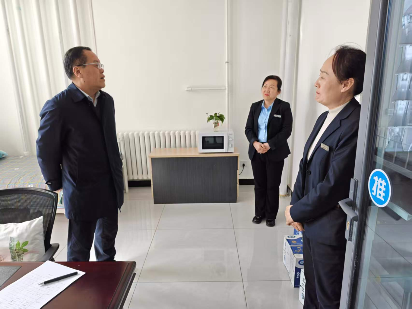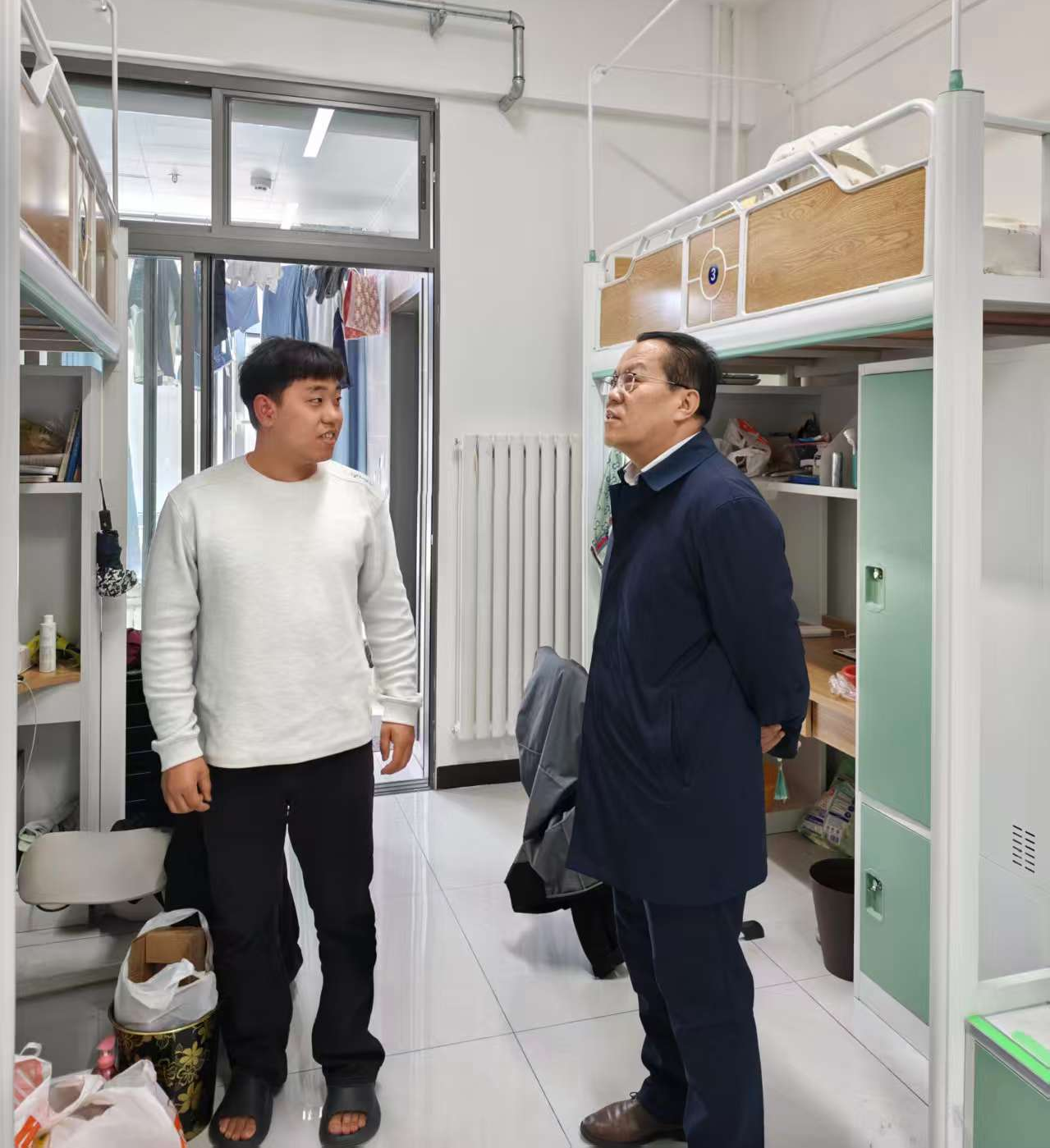 随后,书院领导专程来到各宿舍楼值班室,看望慰问辛勤工作在一线的宿管人员。书院领导与宿管员们亲切沟通交谈,详细了解他们的日常工作情况。