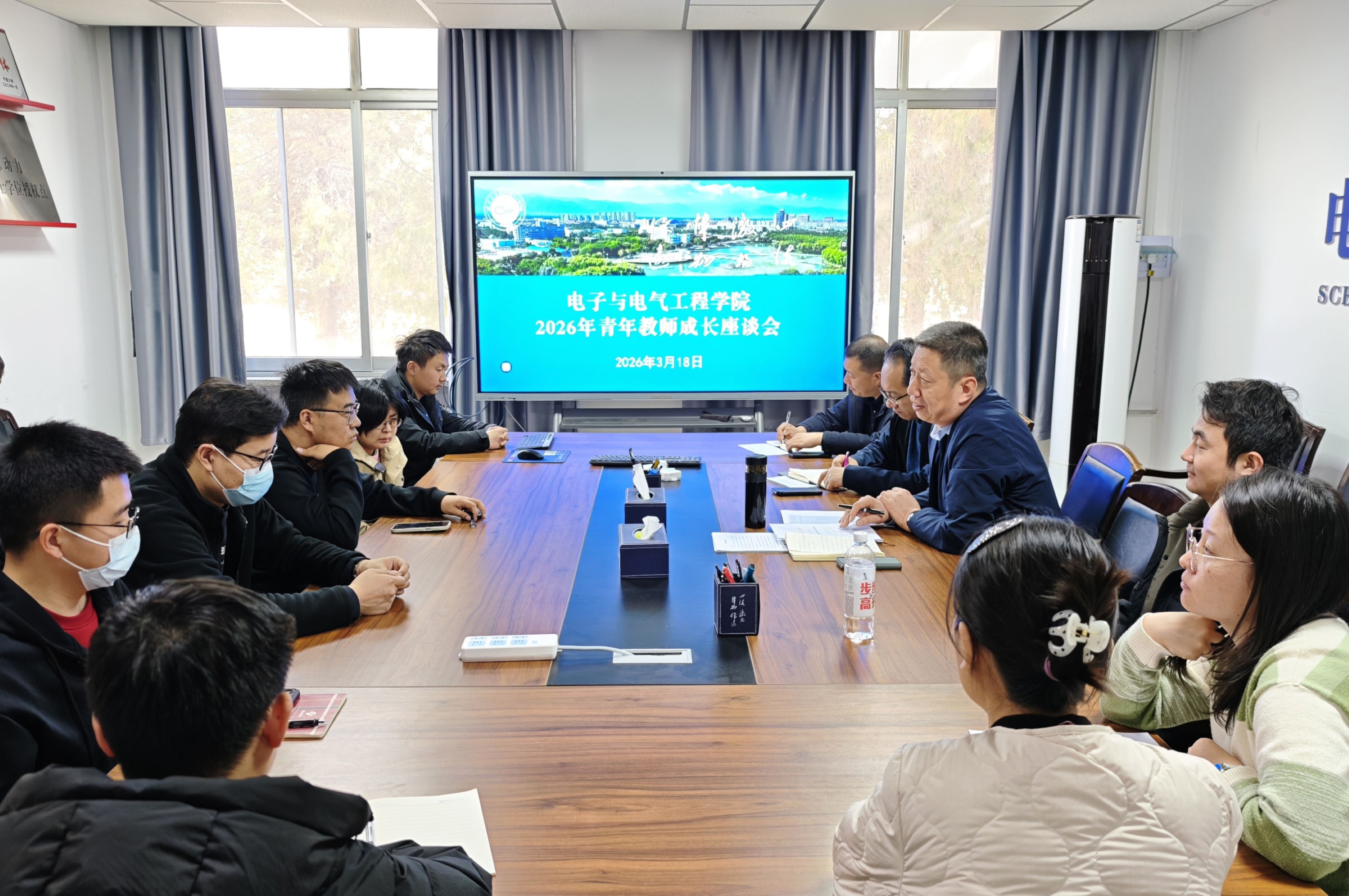 【宁夏大学新闻中心讯 电子与电气工程学院】为进一步加强青年教师队伍建设,倾听青年教师心声,助力其教学科研能力提升,凝聚学院发展合力,3月18日,电子与电气工程学院于怀远校区德言楼召开2026年度青年教师成长座谈会。会议由学院党总支书记何彦平主持,学院领导及2022年以来入职的青年教师参加会议。
