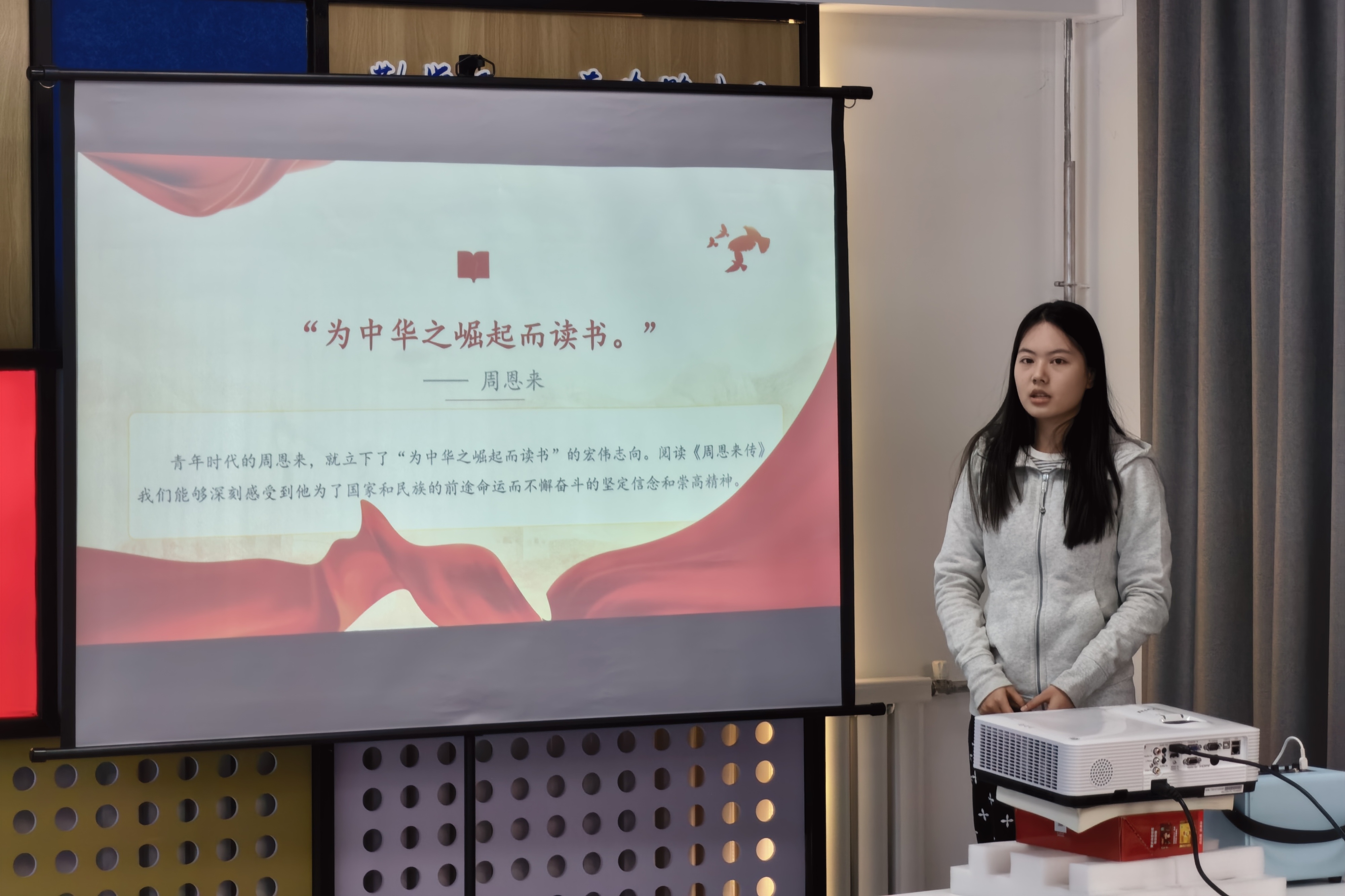 本次读书分享会形式丰富,以经典诵读、情景剧演绎等形式再现红色经典中的赤诚信仰。吴双同学分享了《可爱的中国》,引领大家感悟信仰力量。夏语诺等三位同学则围绕《周恩来传》,带领现场学生品读伟人故事、汲取前行智慧。