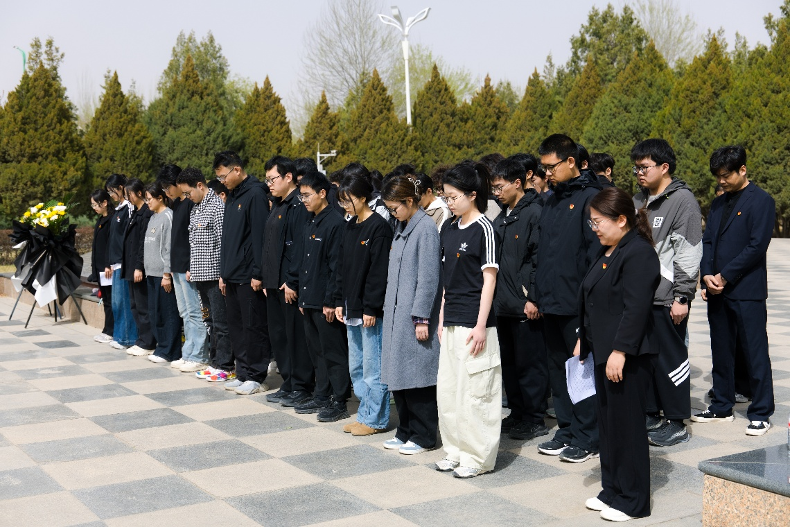当日上午,苍松翠柏掩映,现场庄严肃穆,宁夏解放纪念碑巍然矗立,无声诉说着英雄们用生命守护人民安全的壮丽史诗。全体师生面向纪念碑肃立,奏唱中华人民共和国国歌,行注目礼。随后,全场低头默哀一分钟,向革命先烈致以最深切的哀思。默哀毕,学生代表上前敬献花篮。
