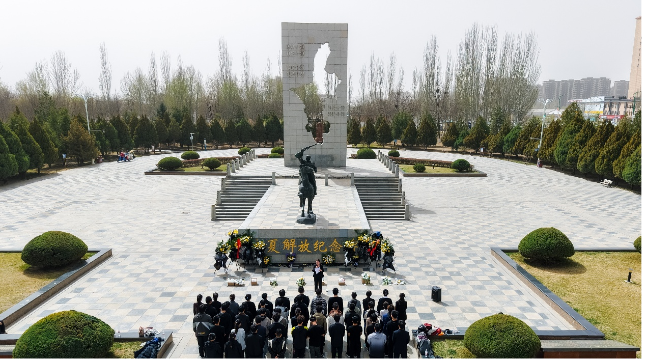 【宁夏大学新闻中心讯 鼎新书院】为深切缅怀革命先烈,传承红色基因,4月3日,在清明节来临之际,鼎新书院师生代表前往宁夏解放纪念碑,开展了一堂生动而深刻的“行走的思政课”——清明节缅怀先烈主题教育活动。通过追思为民族独立和人民解放事业英勇献身的革命先烈,将思政小课堂与社会大课堂深度融合,让师生们从英烈精神中汲取矢志报国的信仰力量,厚植家国情怀。