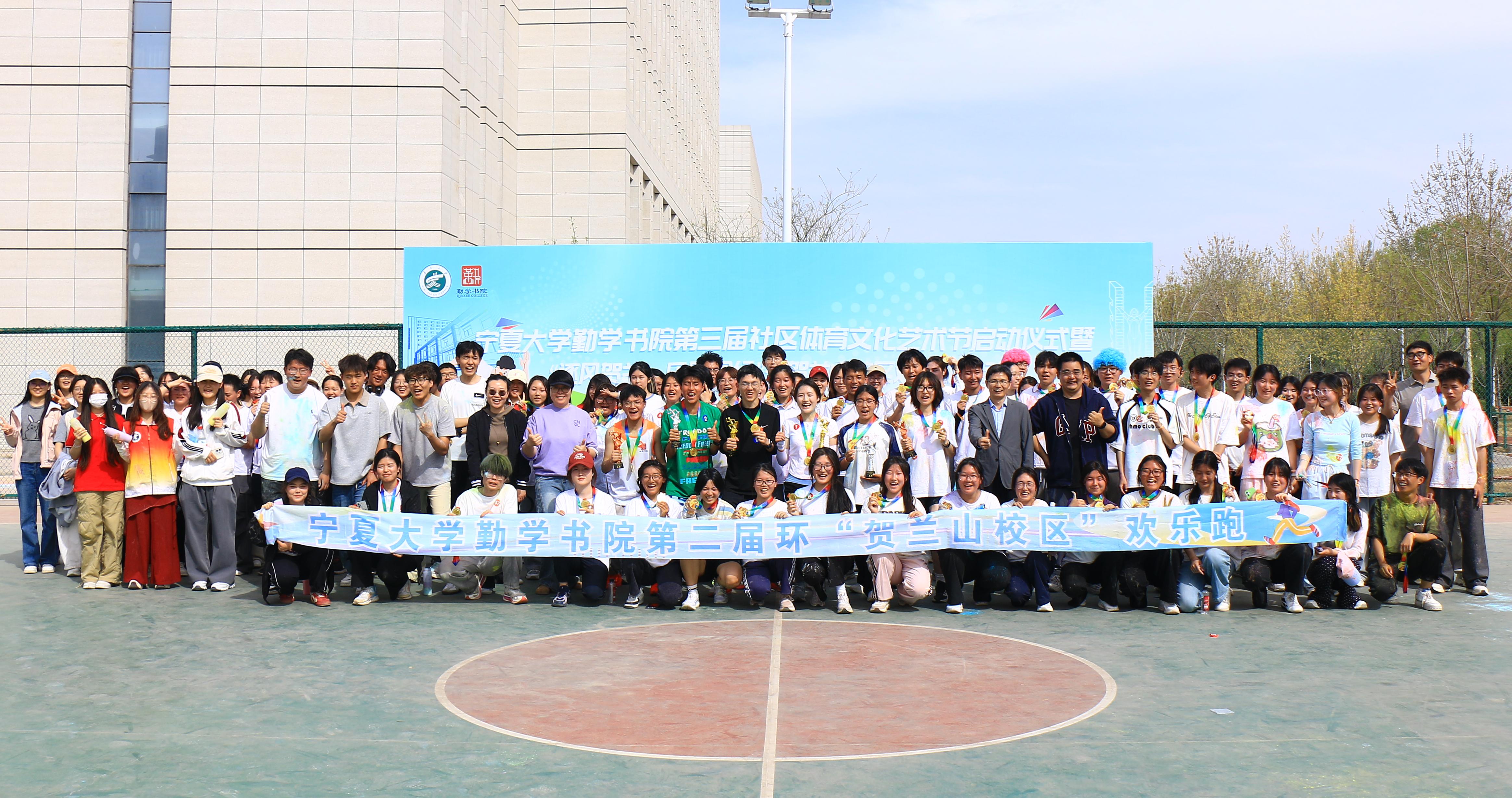 【宁夏大学新闻中心讯 勤学书院】春满贺兰,风和日丽。4月8日下午,勤学书院第三届社区体育文化艺术节启动仪式暨第二届环贺兰山校区欢乐跑在贺兰山校区活力启航,400余名师生齐聚赛场,共赴一场青春与运动的盛会。书院党委副书记靳永雄、杨扬,副院长常江、高媛,“七进一交友”联系班级领导及全体辅导员共同出席启动仪式。