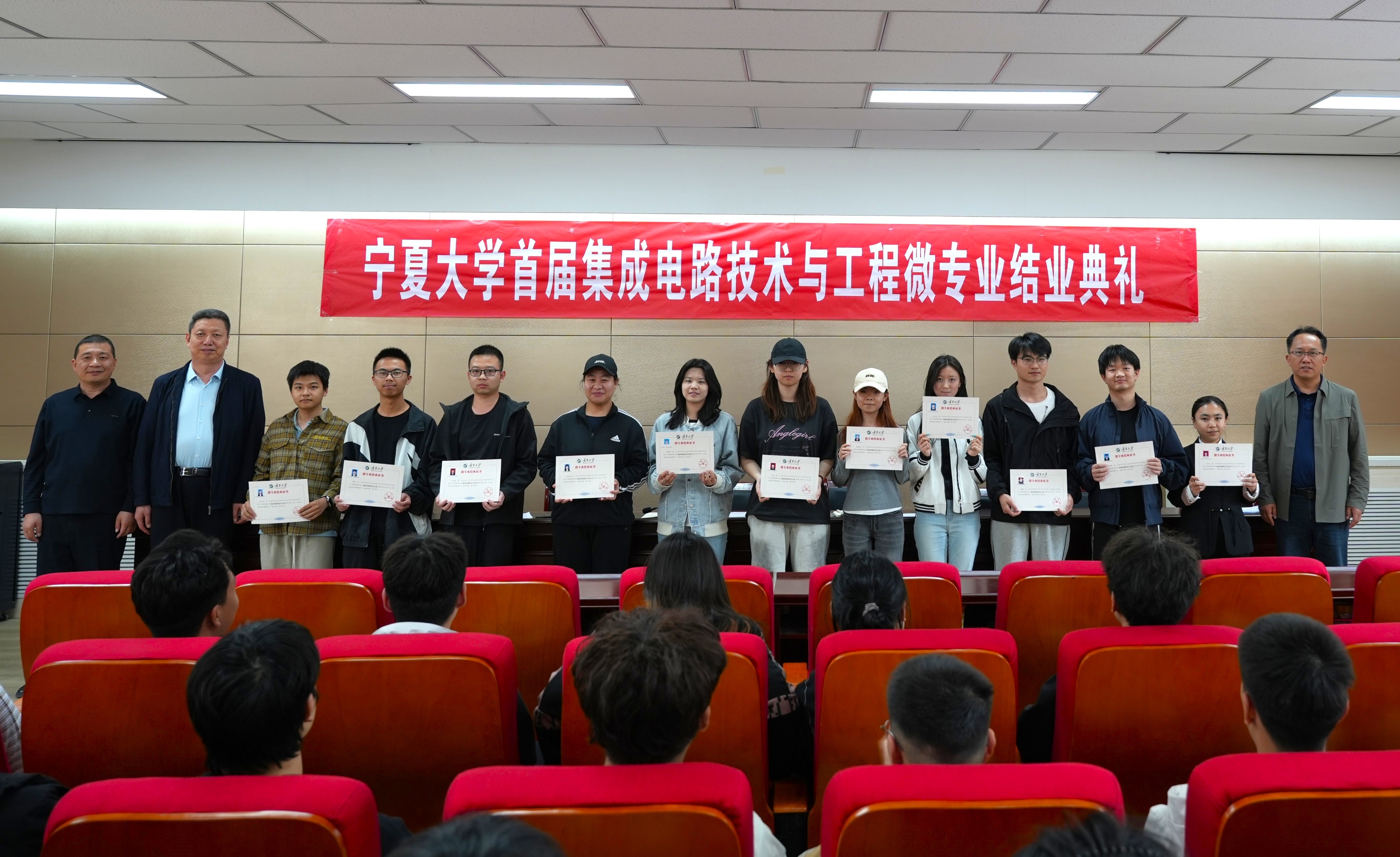 首届微专业自2024年10月开班以来,53名同学克服跨专业学习困难,先后系统完成了集成电路理论、工艺与设备等核心课程的学习,最终顺利结业。此次结业典礼不仅见证了学院在复合型“新工科”人才培养模式上的成功探索,也为宁夏大学服务国家集成电路战略需求开启了新篇章。