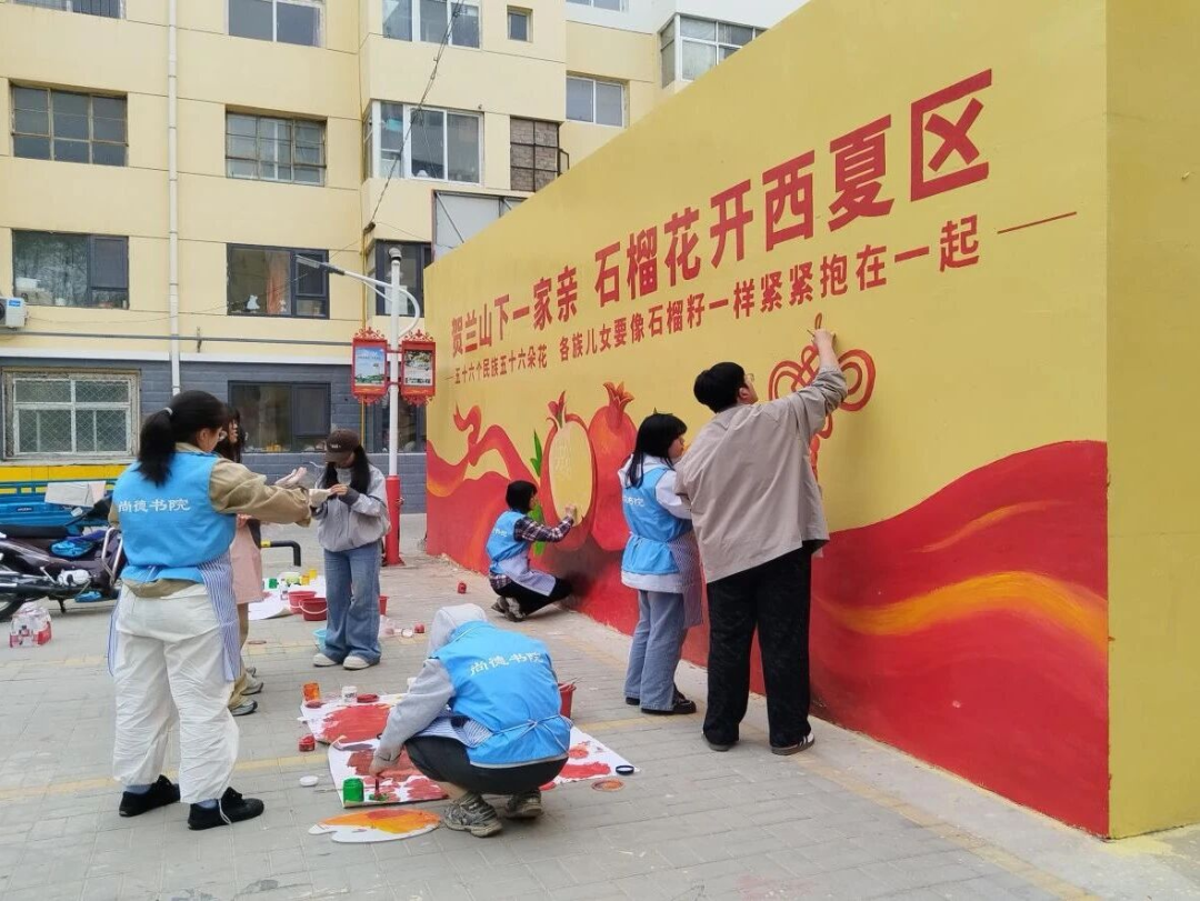 【宁夏大学新闻中心讯 尚德书院】近日,尚德书院团委志愿者工作部组织志愿者走进康庄社区,开展民族团结进步主题文化墙绘制活动,以实际行动响应自治区“十万大学生进社区”行动号召,用专业技能服务社区建设。