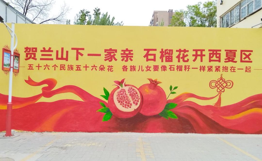 志愿者们奔赴社区指定地点,在社区工作人员完成墙面基础处理后,立刻开启“创作模式”,围绕“民族团结进步”主题,巧妙运用意象,将饱满鲜亮的石榴、舒展如浪的红绸、精巧雅致的中国结巧妙组合,生动直观地传递出“各民族要像石榴籽一样紧紧抱在一起”的深刻理念。