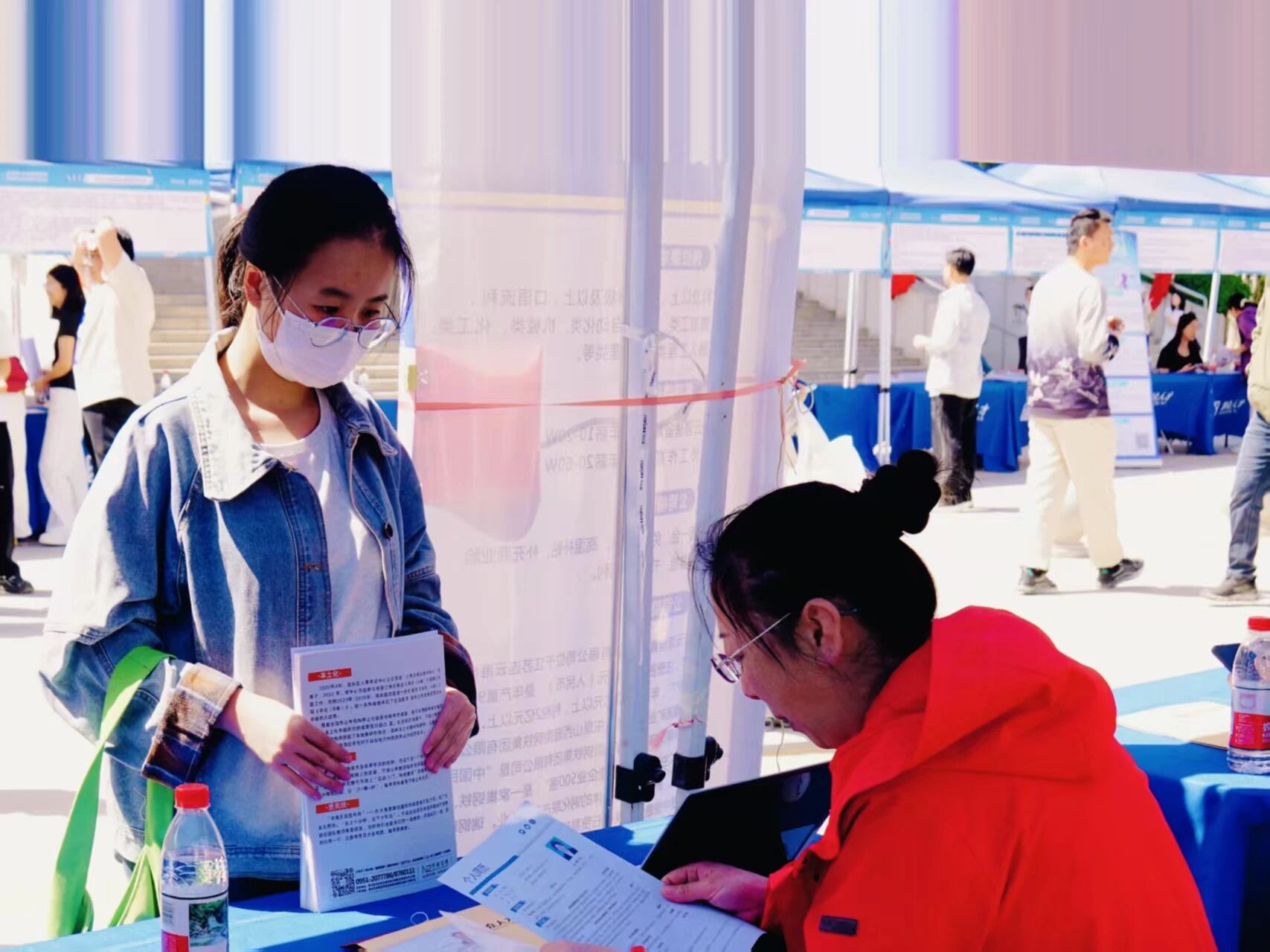 【宁夏大学新闻中心讯 求是书院】为深入贯彻落实党中央、国务院关于促进高校毕业生就业工作的决策部署,抢抓春季就业关键期,4月24日下午,我校求是书院、励行书院、博雅书院携手金凤区人力资源和社会保障局在文萃校区大学生活动中心东侧举办“职引未来·聚力筑梦”2026届毕业生春季校园招聘会。此次双选会共邀请80家用人单位参会,提供240多个就业岗位,招聘1400余人,吸引 2000 多名毕业生到场参与,涵盖计算机、电气工程、数学、统计学、建筑、土木等多个行业领域。校党委副书记韩惠丽、金凤区副区长张卫卫、学生工作部副部长邱嘉凌以及求是书院、励行书院、博雅书院和相关学部、学院的领导莅临双选会现场。