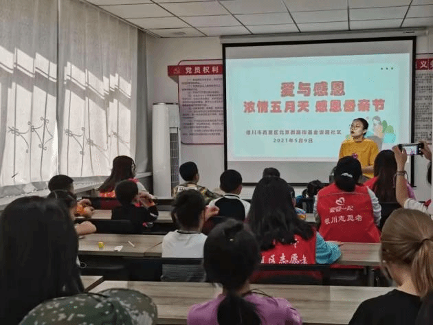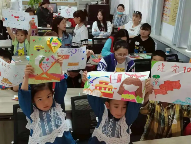 活动中,社区工作者围绕“爱与感恩”这一主题,深刻阐述了“谁言寸草心,报得三春晖”的至理,引导同学们要懂得感恩、学会感恩,通过努力学习更好地报答父母的养育之情;国际教育学院志愿者向各位小朋友们讲述了生动的党史小故事、小知识,小朋友们对中国共产党历史展示出极大的兴趣,并为伟大的党和强大的祖国感到自豪和骄傲。讲解结束后,社区工作者分发彩纸、剪刀、彩笔,志愿者和小朋友们一起制作母亲节贺卡和庆祝中国共产党成立100周年手抄报,小朋友脸上认真的表情与眼神中流露出的浓浓爱意,无不让人动容。