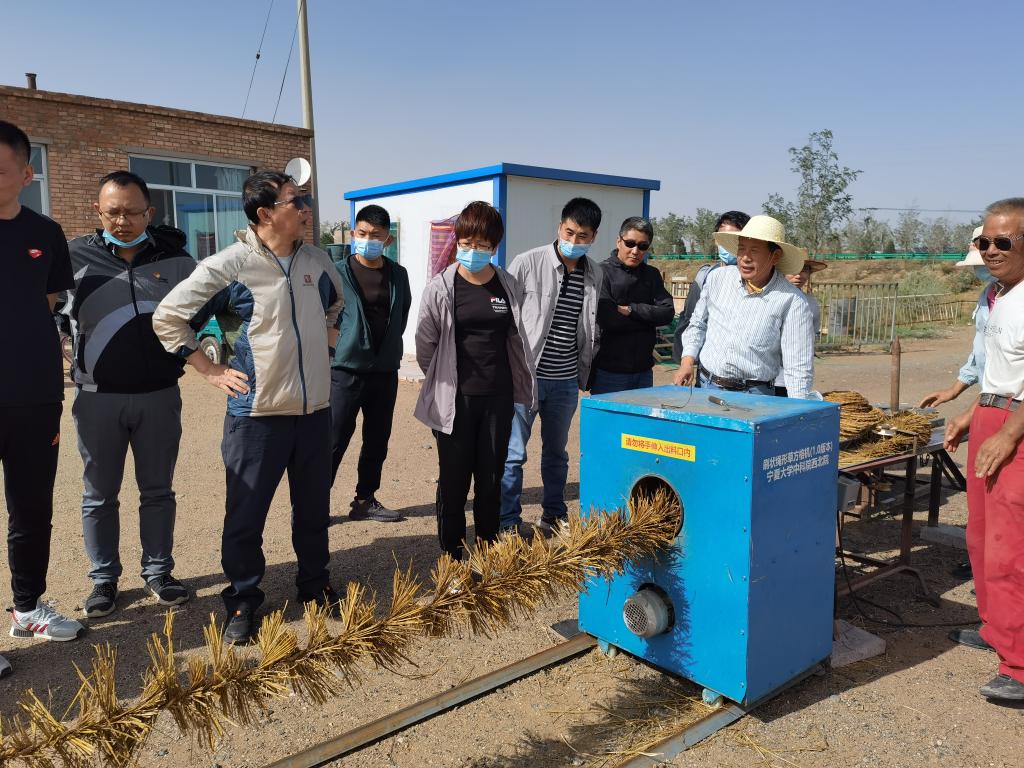 8月23日下午,调研组来到本次考察的最后一站——中卫市沙坡头治沙基地,就我院承担主持的重点研发计划项目“可装备化防沙治沙新材料新技术新工艺研发”进展情况进行考察,站点负责人屈建军教授详细介绍了项目开展情况,并演示了“刷状绳形草方格机”的工作原理,并就项目实施中存在的问题和未来进一步承担更大项目、产出更大成果进行了交流。