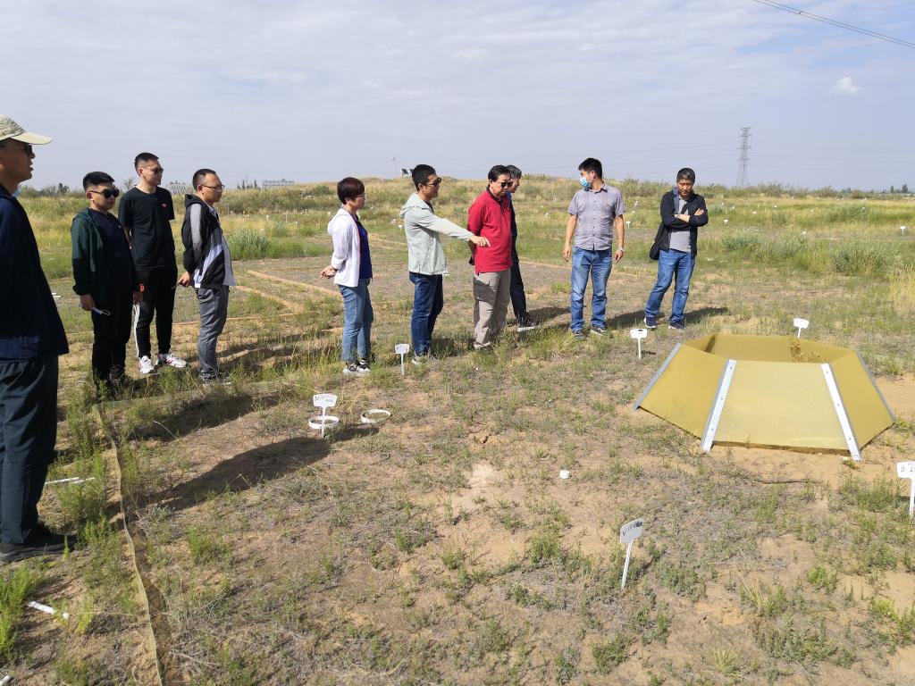8月22日下午,调研组考察调研了盐池县荒漠草原生态系统问题,杨寨子农牧复合系统研究基地负责人陈林和四墩子草业科学研究基地负责人李建平分别介绍了基地建设、固定样地土地使用、与地方合作等情况。