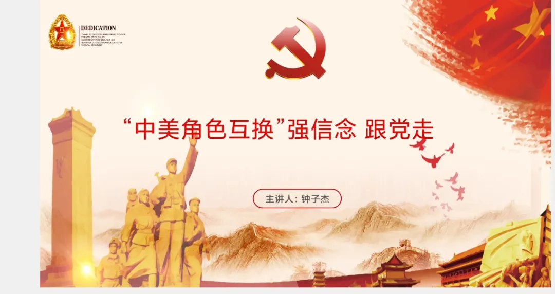 钟子杰从经济水平和科研实力两方面入手,通过具体案例详细解读了中美关系的现状及未来走向,充分展现了中国希望与世界共繁荣的大国形象。他讲到,中美关系要逐步回到不冲突,不对抗,相互尊重,合作共赢的轨道上。各位同学要坚定捍卫国家主权和领土完整,坚定维护自身的正当发展权益和民族尊严。