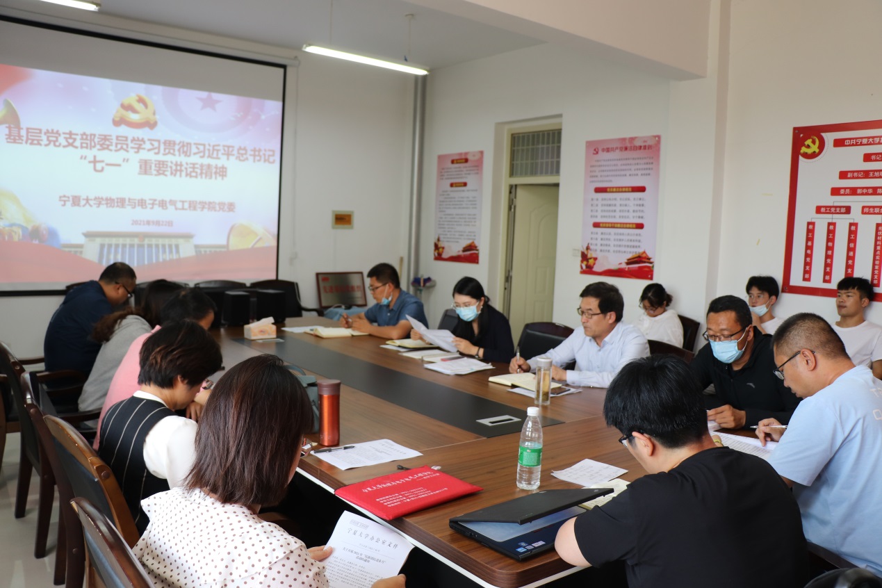 【宁夏大学新闻中心讯 物理与电子电气工程学院】为了贯彻落实中央民族工作会议精神,持续推进党史学习教育走深走实,物理与电子电气工程学院党委在落实理论学习中心组学习的同时,狠抓基层党组织建设,于9月22日在学院209会议室组织基层支部委员培训学习。