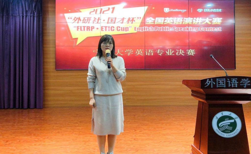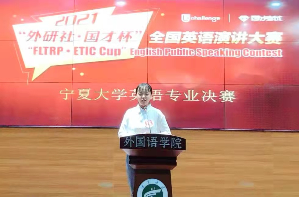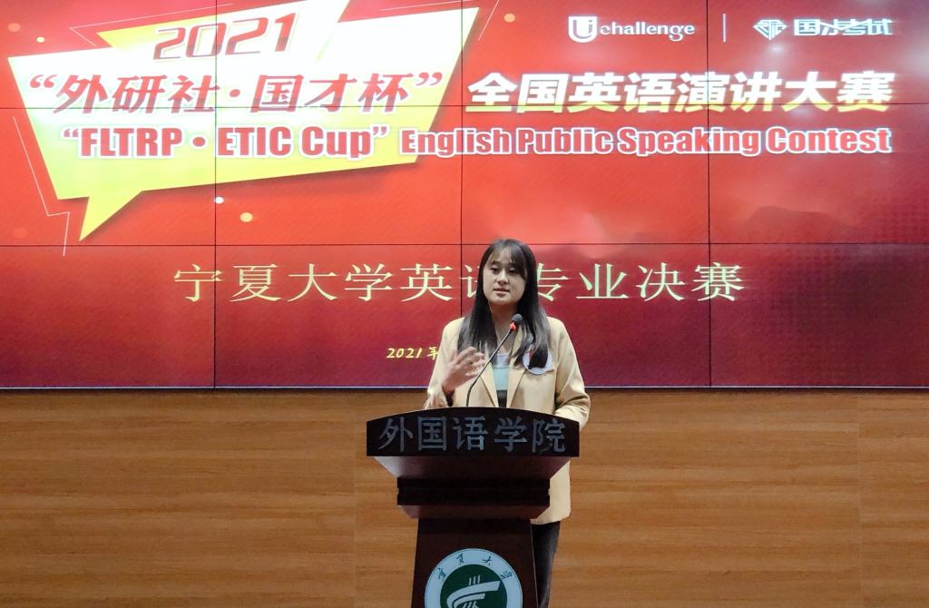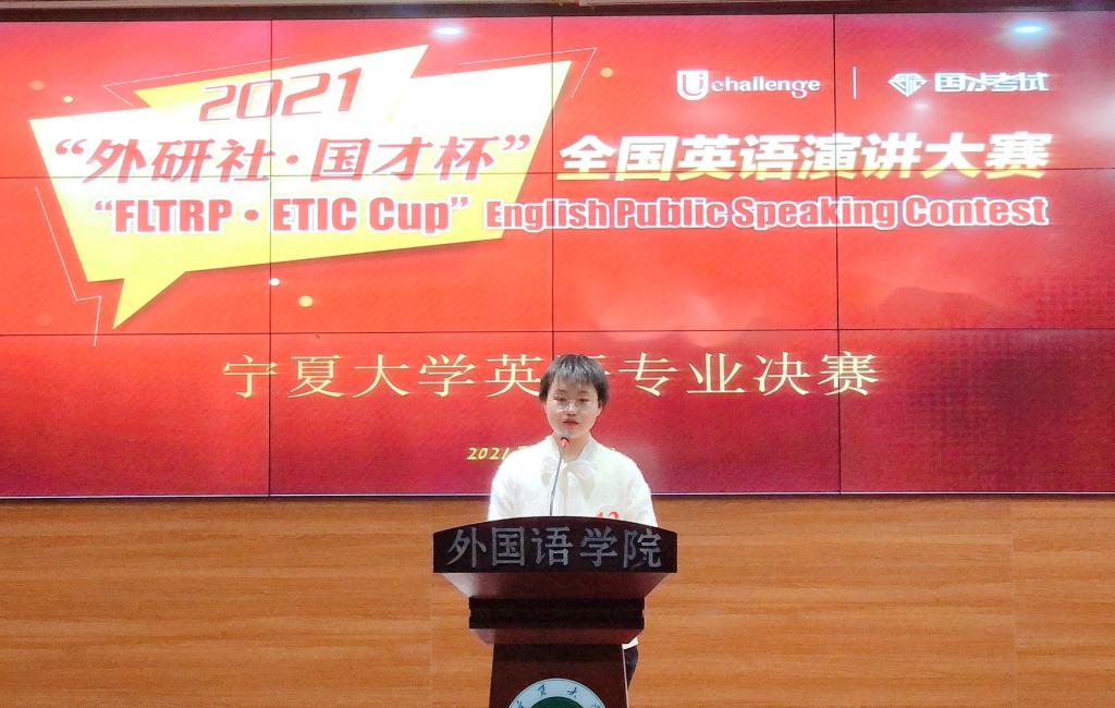 【宁夏大学新闻中心讯 外国语学院】为进一步营造浓厚的专业学习氛围,调动学生的学习积极性和主动性,培养学生的学习兴趣,提高学院学生英语专业综合能力,2021年10月13日18:00,外国语学院在贺兰山校区致远楼403室举办2021年“外研社·国才杯”全国演讲大赛宁夏大学英语专业决赛。