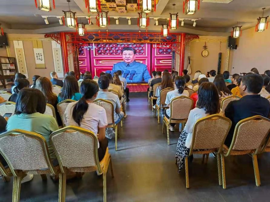 【宁夏大学新闻中心讯 国际教育学院】7月1日上午8时,庆祝中国共产党成立100周年大会在北京天安门广场隆重举行,中共中央总书记、国家主席、中央军委主席习近平出席大会并发表重要讲话。国际教育学院全体教师、学生通过电视、网络多渠道在三楼报告厅和文化体验中心收看大会盛况,共同庆祝中国共产党百年华诞。