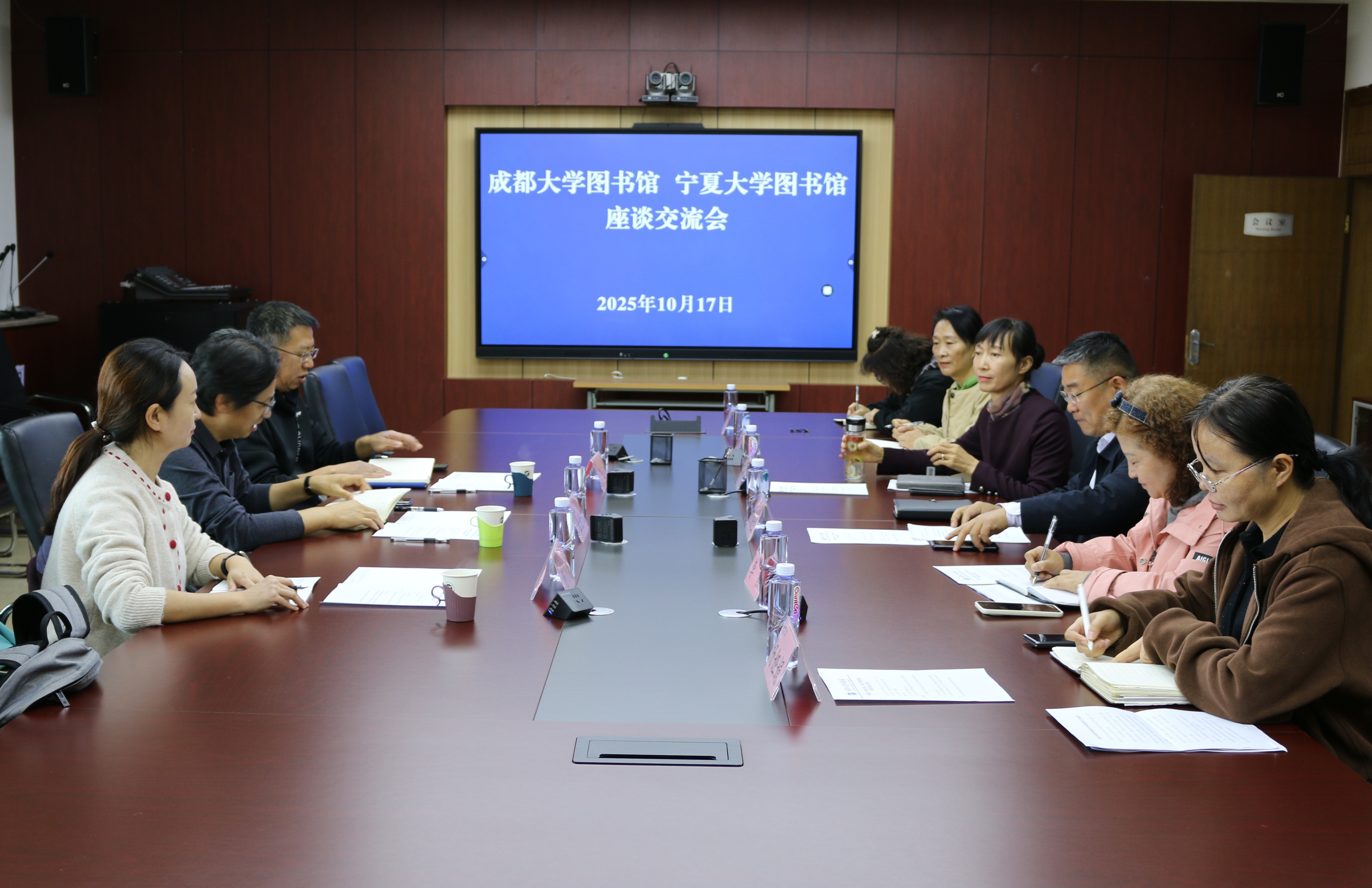 【宁夏大学新闻中心讯 图书馆】10月17日,成都大学图书馆与我校图书馆座谈交流会在逸夫图书馆三楼会议室举行,两馆相关负责人围绕图书馆资源建设、学科服务及资源共享等议题进行了深入交流与探讨。