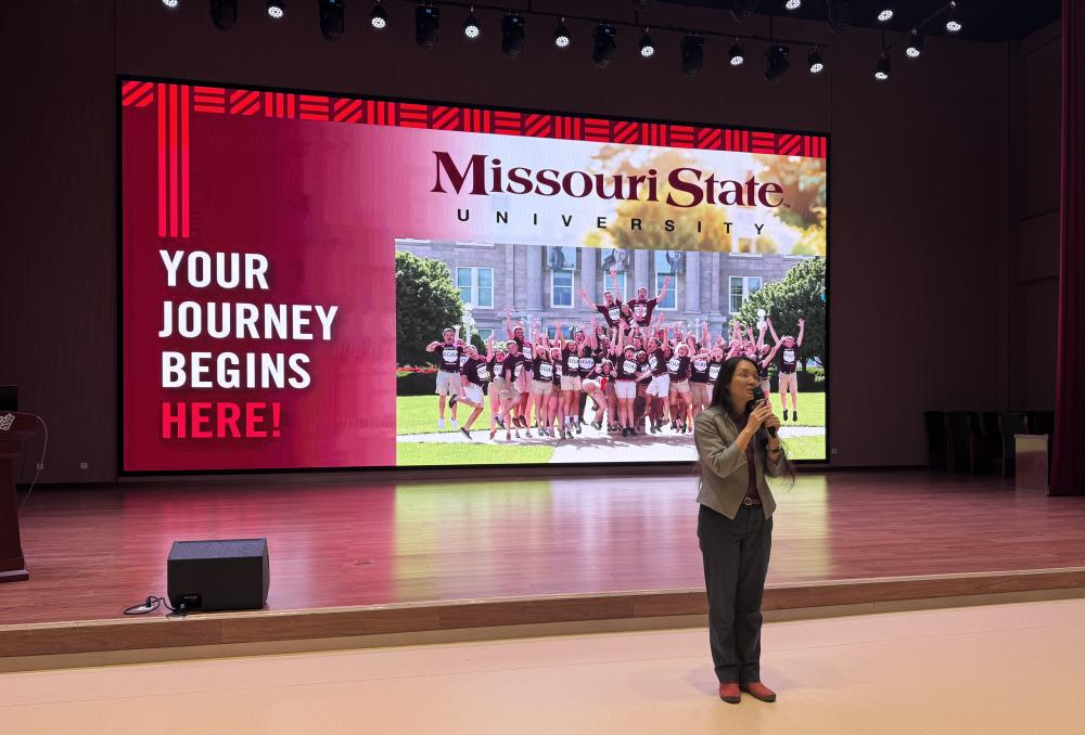 往届赴美访学学生代表结合自身经历,从课程学习、文化生活、人际交往等多个角度分享了他们在密苏里州立大学学习期间的所见所闻、所思所感。