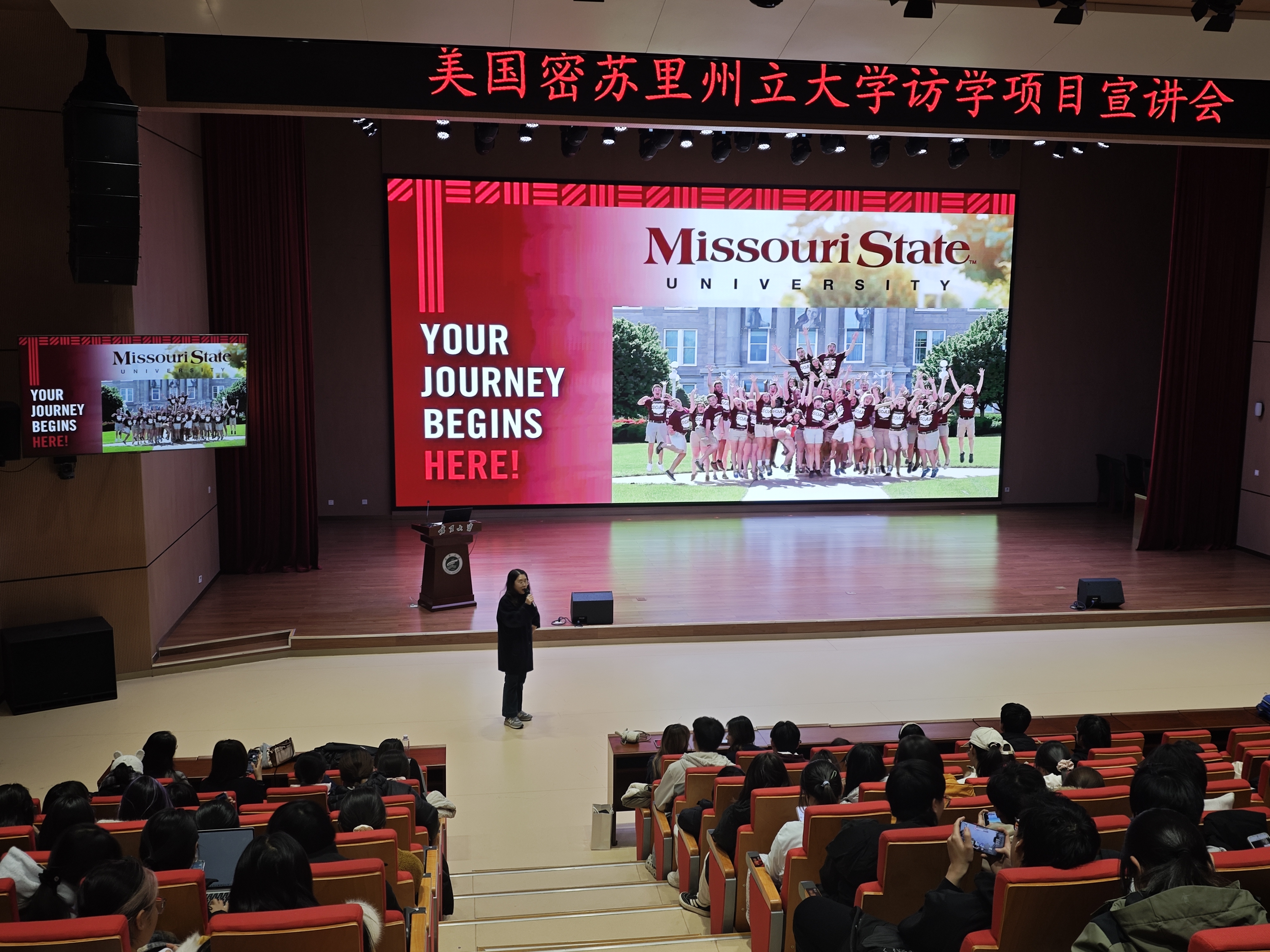 宣讲会上,范巾子详细介绍了美国密苏里州立大学的办学历史、校园环境、学术实力以及文化特色,重点解读了访学项目的课程设置及文化体验活动,为同学们勾勒出一幅清晰而充满吸引力的海外学习图景。对外合作交流处负责老师为同学们进行了政策解读,详细介绍了学校对于学生参与美国密苏里州立大学海外访学项目的资助政策,以及顺利完成访学后的学分转换等相关规定。