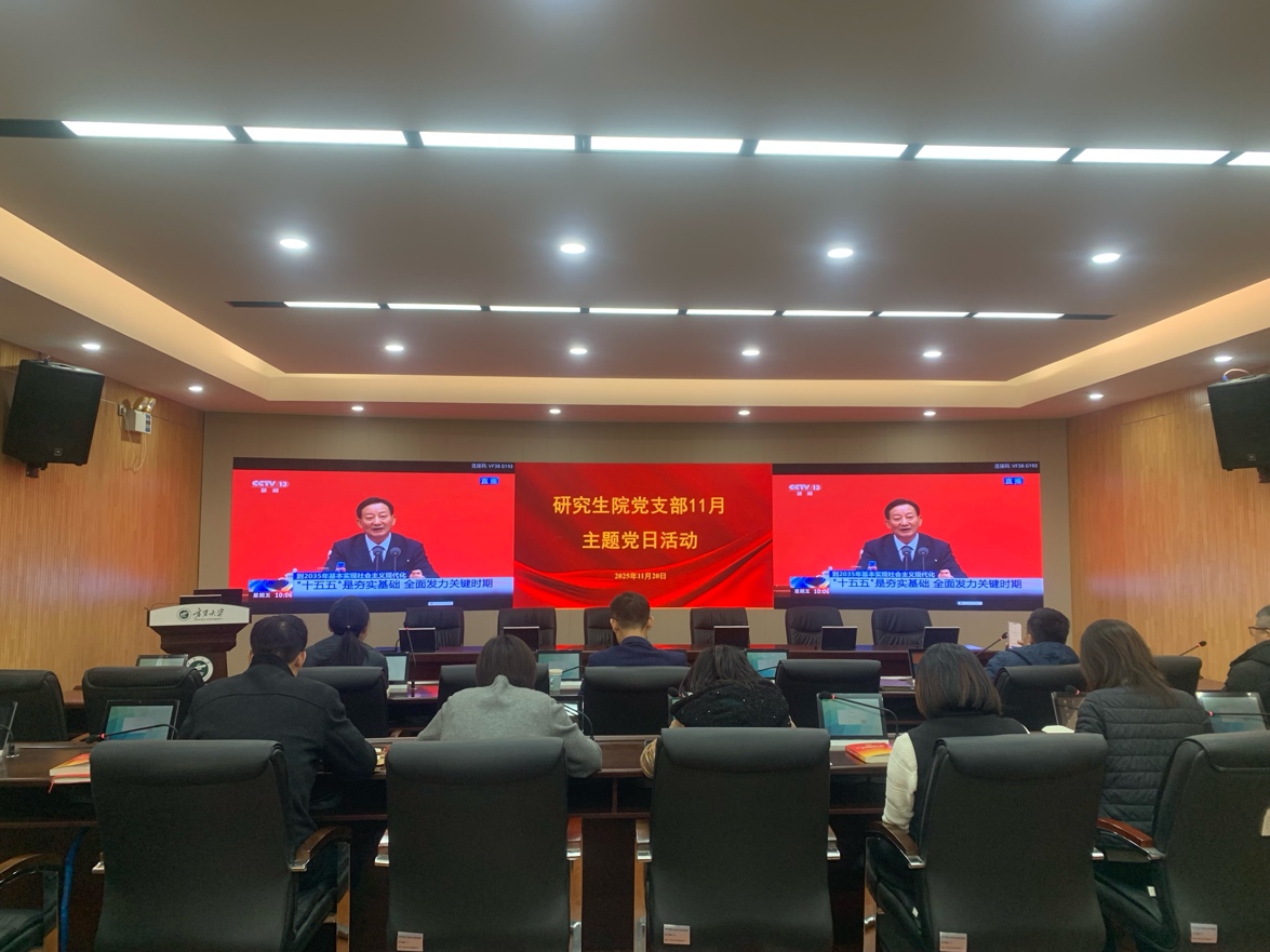 【宁夏大学新闻中心讯 研究生院】为深刻领会、准确把握党的二十届四中全会精神的丰富内涵与核心要义,11月20日,研究生院举办主题党日活动,组织全体教职工进行专题学习,校党委常委、副校长、研究生院院长车进主持会议。