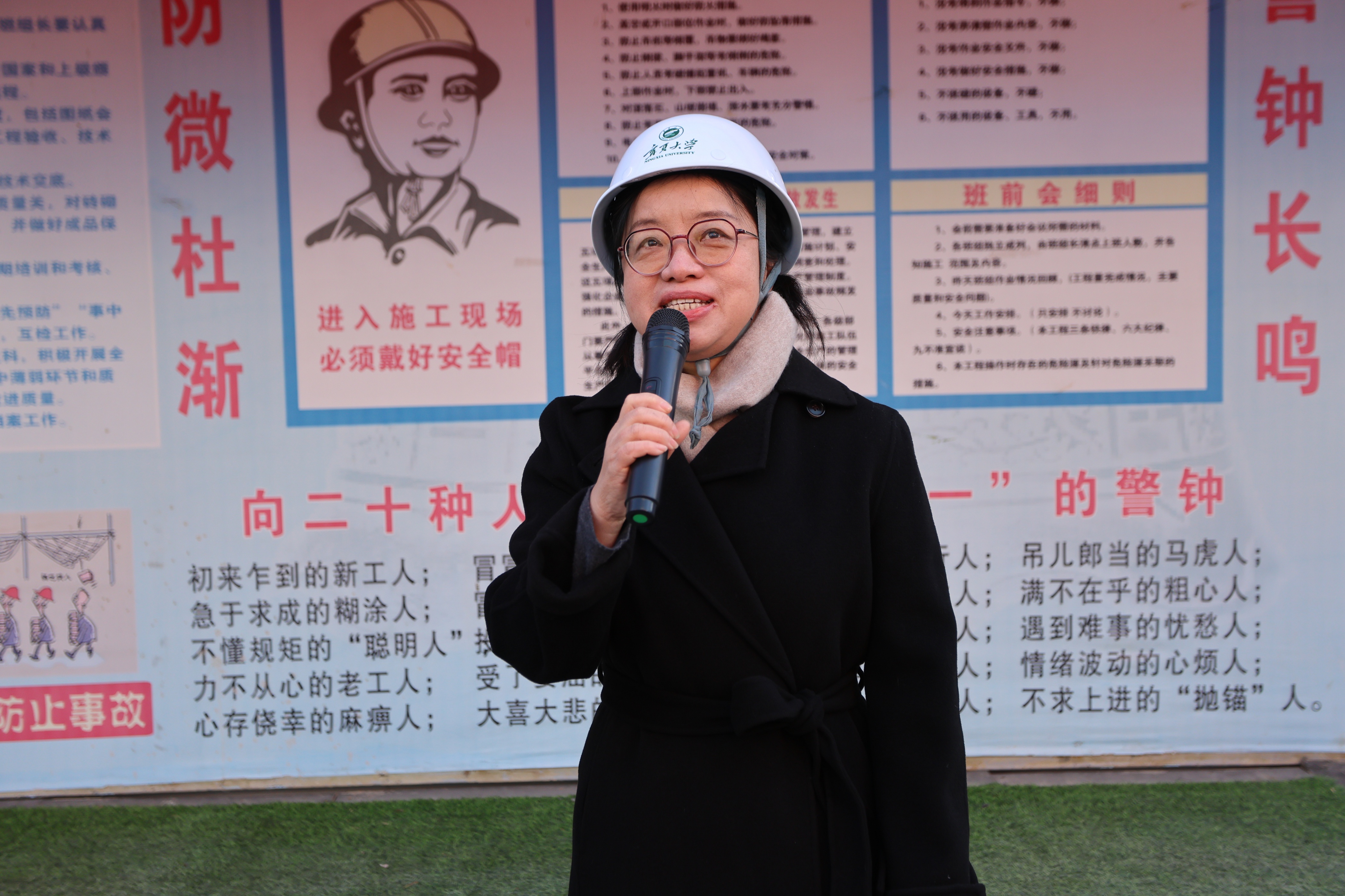 副校长赵晓佳代表学校向各参建单位及全体建设者表示感谢和问候。她强调,主体封顶后将进入后续施工阶段,任务依然艰巨,希望各方认真履职、紧密协作,严格按图纸及国家规范施工,坚持品质,压实安全责任,确保打造精品工程。