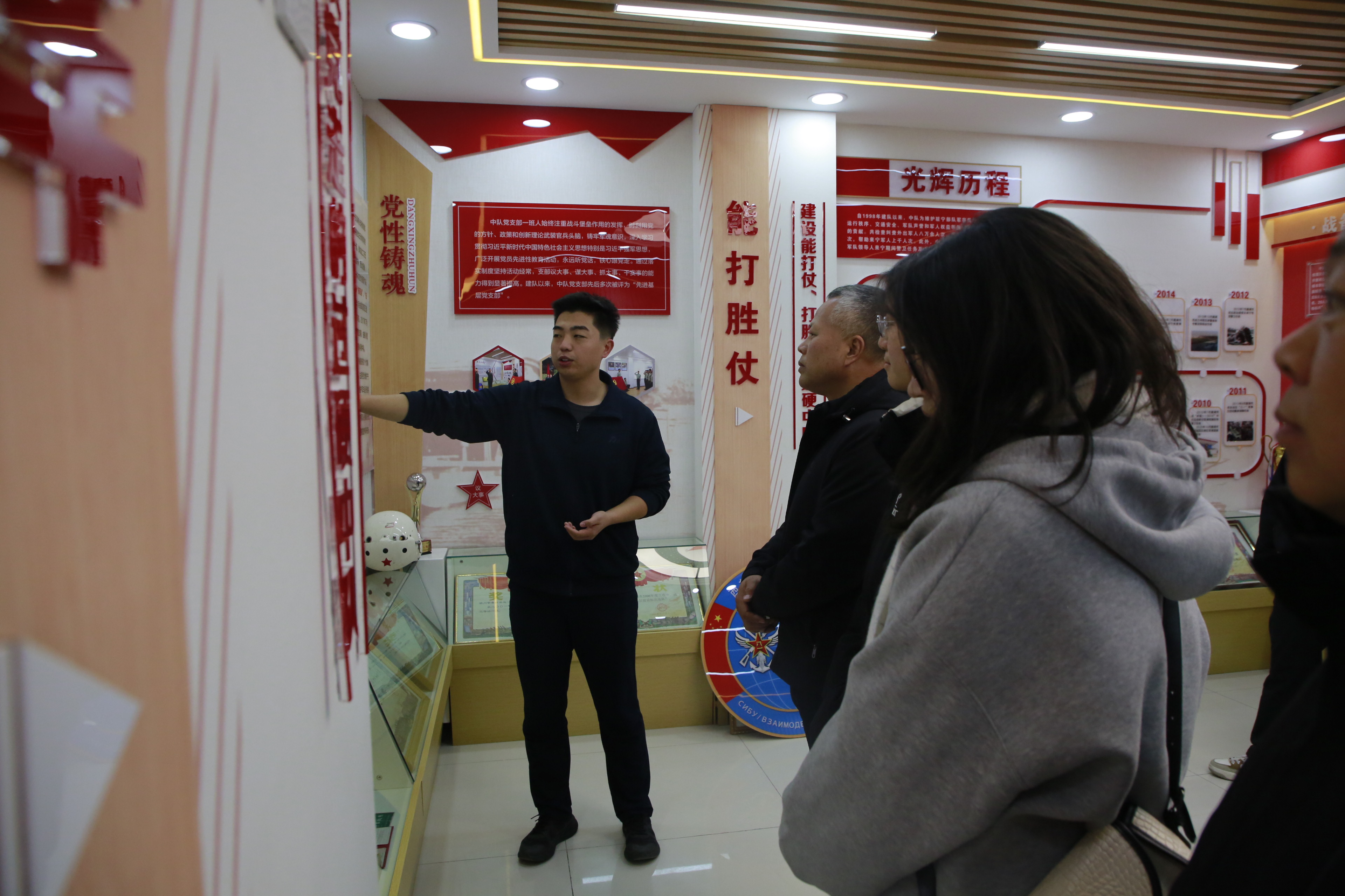师生们还参观了部队正规化建设。在营区宿舍,棱角分明的“豆腐块”军被、时时处处的窗明几净,令同学们赞叹不已;在荣誉室,一面面锦旗、一张张奖状背后承载的铁血荣光,让青年学子深受震撼;在装备展示区,同学们近距离了解国防现代化建设成就,自豪感油然而生。