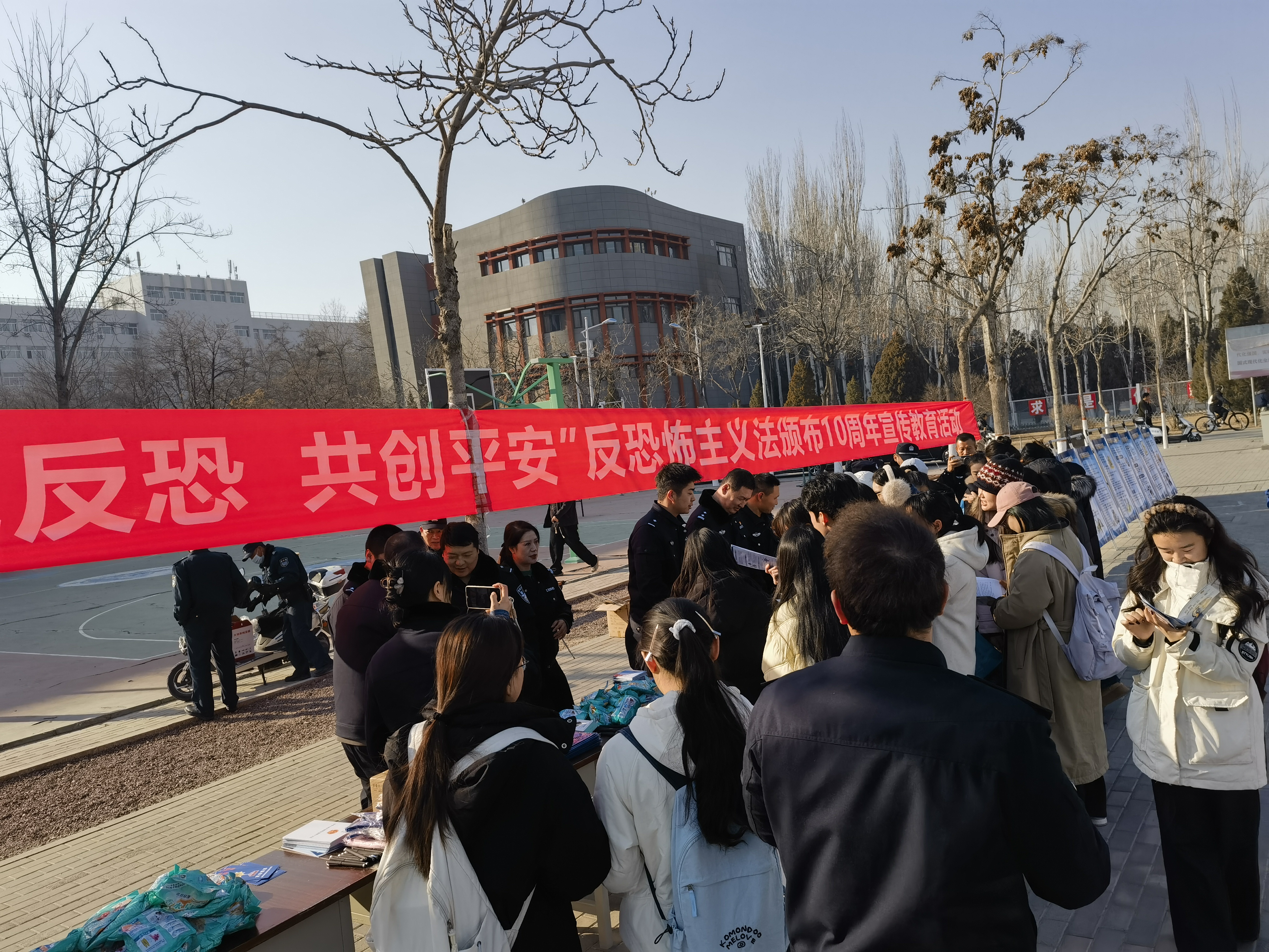 【宁夏大学新闻中心讯 保卫处】12月26日,在《中华人民共和国反恐怖主义法》颁布十周年来临之际,宁夏回族自治区公安厅联合银川市公安局、西夏区公安分局一同走进宁夏大学,共同开展以“全民反恐 共创平安”为主题的反恐怖主义法颁布十周年宣传教育活动。