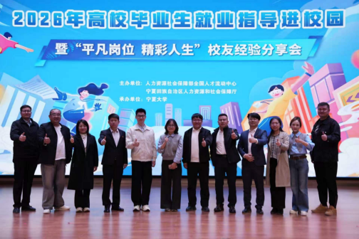 【宁夏大学新闻中心讯 党委学生工作部】4月1日,由人力资源社会保障部全国人才流动中心、宁夏回族自治区人力资源和社会保障厅主办,宁夏大学承办的“高校毕业生就业指导进校园暨‘平凡岗位 精彩人生’校友经验分享会”在我校笃行楼一楼报告厅举行,活动通过专家讲座与校友分享,为在场学生带来了一场关于就业认知与职业成长的深度交流。