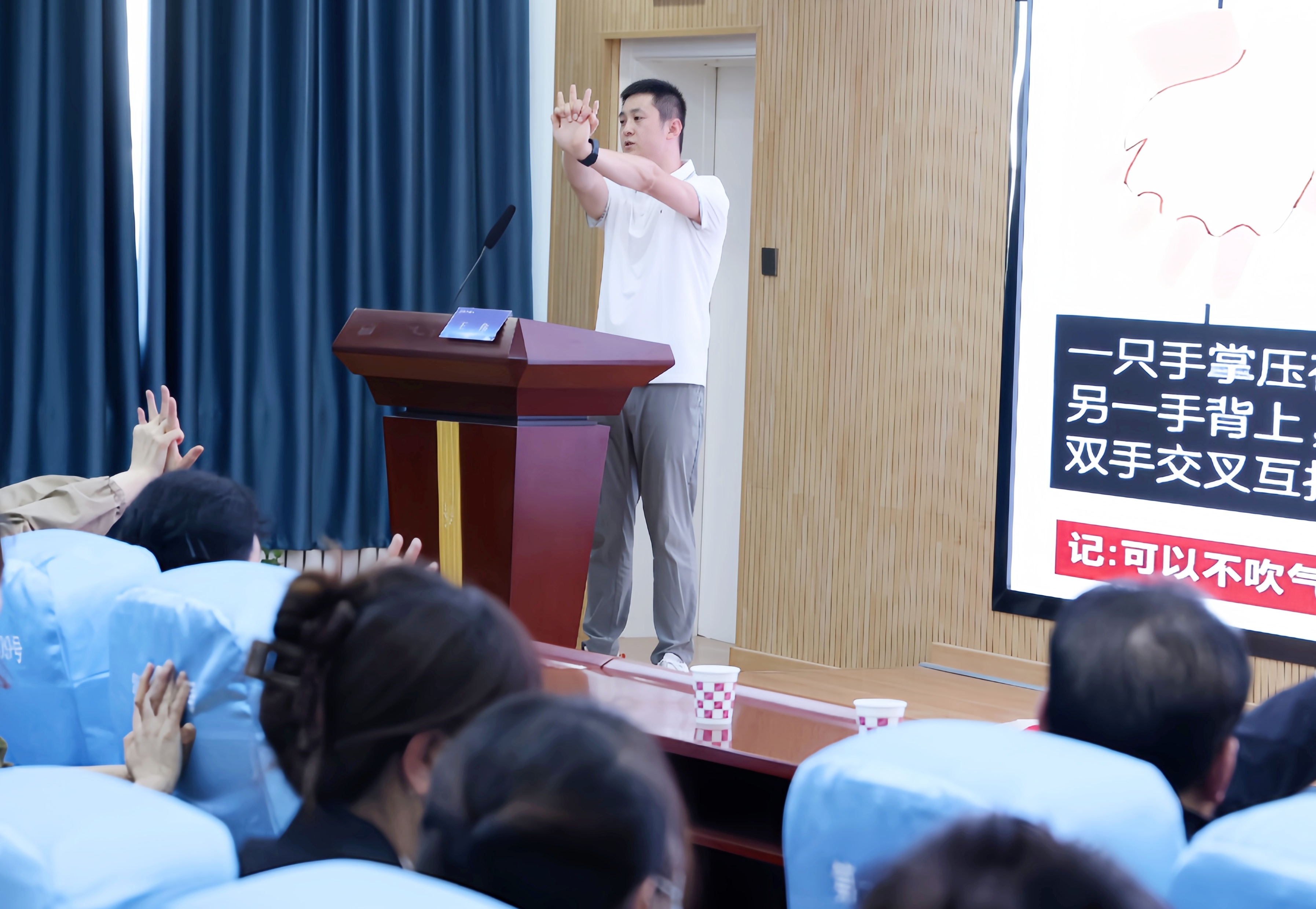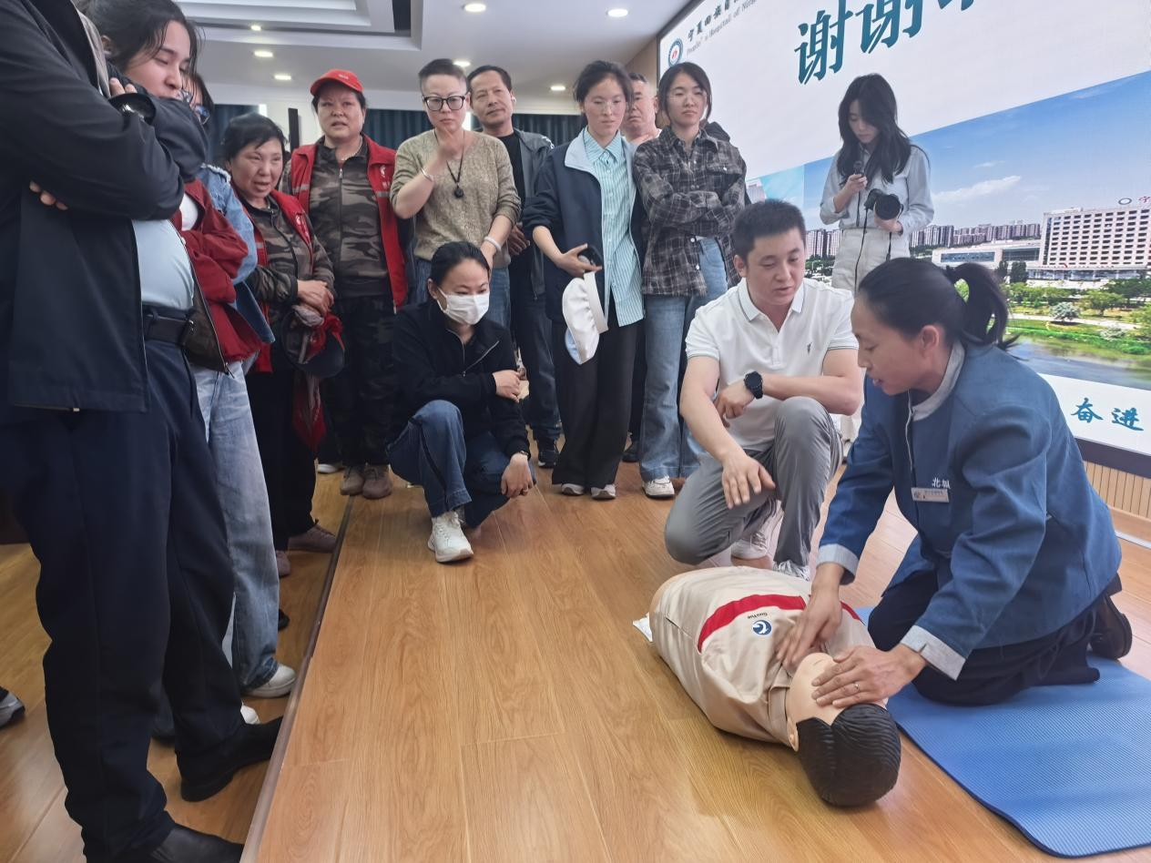 理论讲解后,医护人员示范了心肺复苏标准流程,从胸外按压的深度、频率,到开放气道、人工呼吸的要点,一步步清晰演示。参会人员在医护人员指导下,利用模拟人亲自动手操作,逐一体验AED使用与心肺复苏全过程,专家在旁及时纠正动作,确保大家真正学懂、学会、能用。