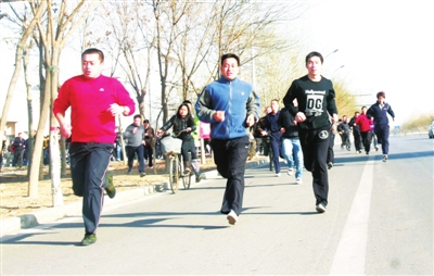 12月7日,宁夏大学的老师们在公路边划定的赛道上奔跑。当日,宁夏大学举办冬季越野赛,吸引700余名教职工参与,学生们不忘在路边呐喊助威。 李亮/摄