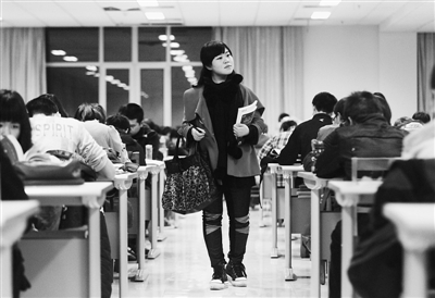 作为音乐专业的考生,路向祺除了要和其他考生一起参加英语、政治、专业学科的笔试之外,还要参加钢琴面试,所以她的考研路走得比别的考生更加艰难。每天早早起床,带上复习资料前往自习教室占个安静的座位,然后抱着英语和政治书到校园的僻静处大声朗读背诵,下午四点在教室里上完自习后,她就要到琴房去练琴,有时会约上辅导老师,加强练习,晚饭后会去书店里看看新到的考研资料,晚上七点开始,又一头扎进自习室的那堆比她还高的复习资料里,直到晚上十一点……这就是路向祺每天的生活。“有时候回到宿舍后,我会趁上网查资料的间隙听听歌放松一下。”路向祺一边翻阅着考研书籍一边笑着对记者说,“我还见过早上六点不到就爬起来背书的同学,相比之下,我算是比较懒的!”