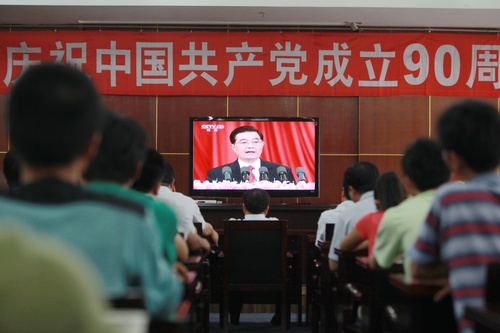 2011年7月4日宁夏新闻网讯(记者 杨丽 田丽 尤天竹 段霄 马建宁 祁瀛涛 徐丽萍)7月1日上午10时,庆祝中国共产党成立90周年大会在人民大会堂隆重召开,中共中央总书记胡锦涛在大会上发表重要讲话。当天上午,宁夏党政机关和社会各界纷纷组织干部群众观看建党90周年大会实况,共庆党的生日。