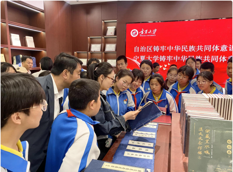 中小学生在宁夏大学中华民族共同体教育基地开展研学活动。 宁夏大学供图 依托国家民委中华民族共同体研究基地、教育部人文社科重点研究基地、全国重点马克思主义学院培育单位,该团队推动课程思政与思政课程协同共振,实现知识传授与价值引领同频发力。