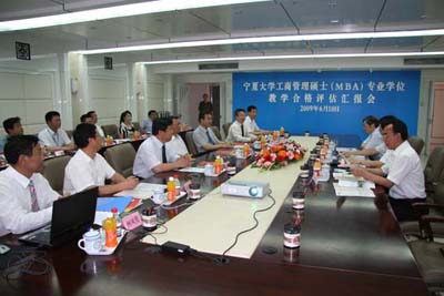 【宁夏大学新闻中心讯 邱守刚/文 虎建华/图】根据国务院学位办关于开展中国高校工商管理硕士(MBA)专业学位教学合格评估通知的精神,按照国务院学位办的部署,6月10日,工商管理硕士(MBA)专业学位教学合格评估专家组莅临我校,对我校的MBA专业学位项目进行教学合格评估。专家组以南开大学商学院院长李维安教授为组长,成员有江西财经大学副校长吴照云教授,东南大学经济管理学院院长徐康宁教授。