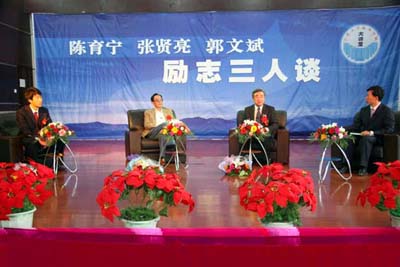 【宁夏大学新闻中心讯 党委宣传部】 4月17日下午,宁夏大学新华学院“新华大讲堂”开讲。学院邀请著名作家张贤亮,自治区作家协会副主席、银川市文联主席、《黄河文学》杂志主编、鲁迅文学奖获得者郭文斌与宁夏大学新华学院院长、博士生导师陈育宁教授同台讲座,畅谈“励志人生”。