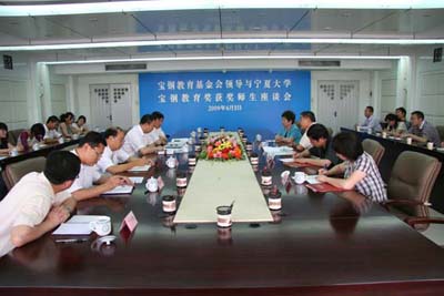随后,举行了宝钢教育基金会领导与宁夏大学宝钢教育奖获奖师生座谈会。我校党委副书记撒承贤、副校长王燕昌及我校宝钢教育奖获奖师生出席和参加了座谈会。会议由王燕昌副校长主持。