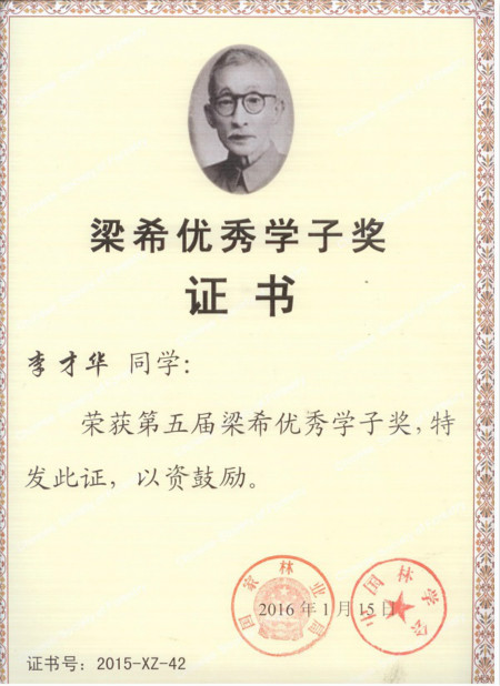 据悉,“梁希优秀学子奖”由中国林学会组织评定,是为纪念我国著名的林学家和林业教育家、我国首任林垦部部长梁希先生而创立的,旨在促进林业高校学生全面发展,激励林业高校学生树立“奉献、创新、求实、协作”的科学精神。该奖于2007年首次开展评选工作,每两年评选一次,奖励对象为全国林业高等院校和设有林学院的农大、综合性大学林业及相关专业的本科生、硕士生和博士生,获奖者将获得奖励证书和奖金。本届梁希优秀学子奖的评选共收到来自全国27林业高等院校和设有林学院的农大、综合性大学上报的候选人69名,经形式审查、专家初审和评审会严格评选,共评出获奖者43名。