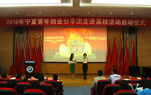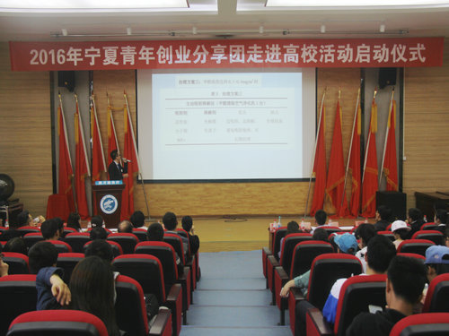 【宁夏大学新闻中心讯 团委】4月24日,由团委、创新创业学院、校学生会承办的2016年宁夏青年创业进校园分享交流活动在怀远校区英才报告厅举行。自治区团委工农青年部、校团委主要负责人,企业家及大学生创业代表共200余人参加了此次活动。