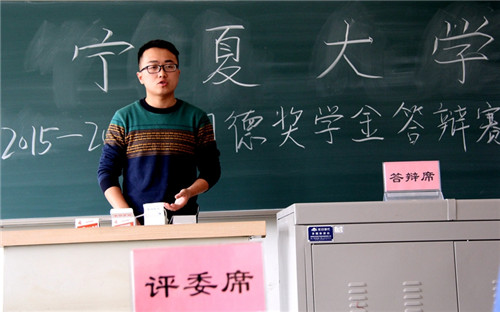 评委们从演讲内容、语言表达、思维逻辑、仪容形象四个方面对答辩学生进行评分,此次答辩成绩和学生专业成绩将按照一定比例记入明德奖学金评审成绩,提交宁夏大学“明德奖“领导小组评审确定明德奖学金获奖学生。