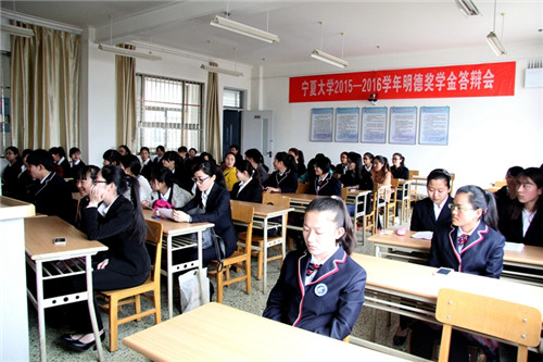 【宁夏大学新闻中心讯 学生处】3月16日下午,我校举行了2015-2016学年明德奖学金答辩会。来自教育学院、化学化工学院、音乐学院等12个学院共计285名师范生参加了答辩,长期从事师范生教育管理工作的教师担任了评委。