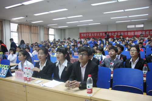 【宁夏大学新闻中心讯 化学化工学院 学生记者 米克房】为全面提升我校学生的实验技能和分析问题、解决问题的能力,培养和开拓学生的实践和创新能力,激发学生对化学实验的兴趣,4月27日由宁夏大学主办、化学化工学院承办的校级基础化学实验技能竞赛在C区宁夏大学基础化学实验中心顺利举行。我校化学化工学院、生命科学学院、资源环境学院、农学院、新华学院的200多名学生参加了本次竞赛。