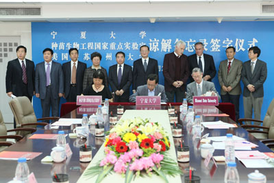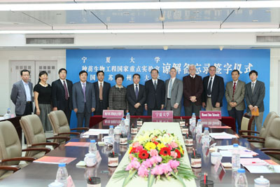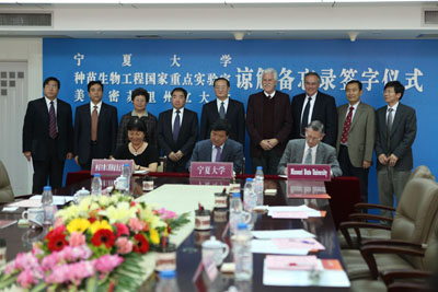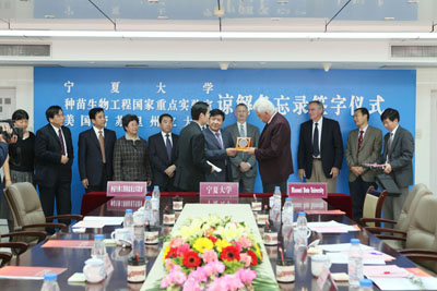 三方共同签署《宁夏大学·种苗生物工程国家重点实验室·密苏里州立大学理解备忘录》。