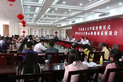 成立大会结束后,马克思主义学院组织召开了由我区高校部分教师代表参加的社会主义核心价值体系座谈会。宁夏大学马克思主义学院李静老师、北方民族大学黄桂华老师、宁夏医科大学张杰老师、宁夏师范学院邱双成老师及宁夏大学马克思主义学院研究生杨翠翠同学分别作了主题发言。