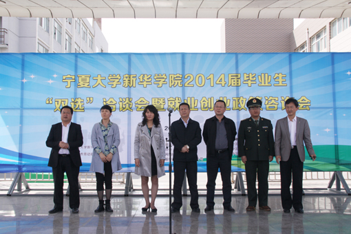 【宁夏大学新闻中心讯 新华学院】为拓宽毕业生就业渠道,解决毕业生求职与企业用人需求的双向矛盾,4月23日下午,新华学院在中心区操场成功举办“2014届毕业生就业‘双选’洽谈会暨就业创业政策咨询会”。自治区教育厅学生处、自治区人力资源开发服务局、银川市劳动就业服务局、西夏区人民武装部相关领导出席了本次洽谈会。
