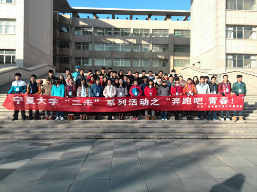【宁夏大学新闻中心讯 团委、经济管理学院】12月3日,由校团委主办,经济管理学院团委、学生会承办的宁夏大学“三走”系列活动之“奔跑吧,青春”第一季在校本部C区田径场、A区一教顺利举办。校团委副书记肖功国,经济管理学院团委书记黄旭兴及各学院学生会主席和学生代表300余人参加并观看了本次活动。