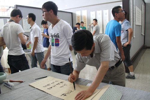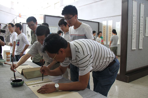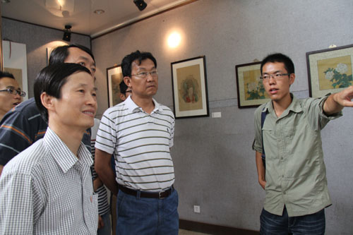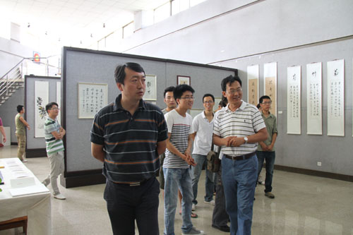 【宁夏大学新闻中心讯 张新民、陈佩报道】6月24日,我校美术学院2010级学生李永攀、赵伟书画展在美术学院一楼展厅举办。督导室副主任黄二宁、马克思主义学院院长李斌、美术学院党总支书记胡牧、美术学院副院长李晓春、美术学院党总支副书记张启明、美术学院副院长蔡永刚、国画教研室撖学文教授参加画展开展。我校百余名师生前去参观。