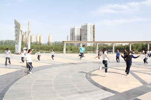 【宁夏大学新闻中心讯 团委】近日,由校团委主办,物理电气信息学院团委作为试点单位承办的宁夏大学“三走”系列活动之大学生宿舍活动月活动之“律动金波湖 快乐你我他”宿舍花样跳绳比赛在校本部B区凌云广场举行。校团委副书记马慧、物理电气信息学院党委副书记王志霄,团委书记郑睿及物电学院2013级全体学生共同观看并参加了此次比赛。
