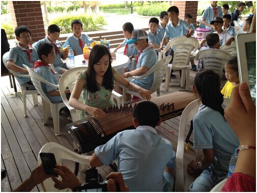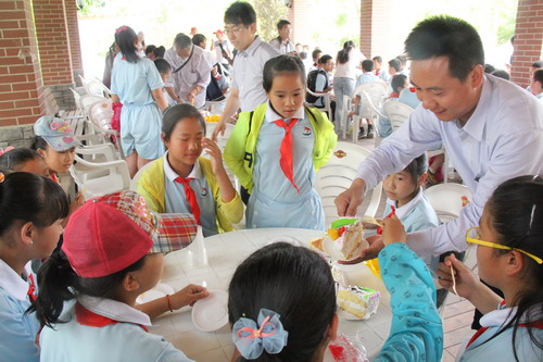 活动中,小朋友们在大学生志愿者的带领下先后在校园里参观了逸夫图书室、实验室、多媒体教室、宿舍及金波湖等,听着大学生们的介绍,小朋友们都露出了羡慕的神情,并不时就大学校园生活向这些大哥哥、大姐姐提问。参观结束后,大学生志愿者们在校本部B区文化广场咖啡屋为小朋友们准备好了糖果饮料和蛋糕等,并与他们行了游戏互动,孩子们争相唱歌、跳舞,展示才艺,大学生们也为孩子们表演了古筝弹奏等。