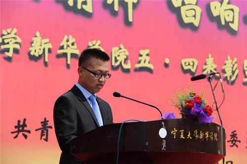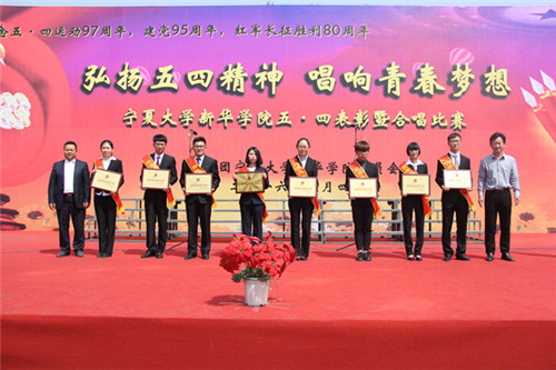 【宁夏大新闻中心讯 新华学院 党委工作部】5月4日下午,新华学院纪念五·四运动97周年表彰大会暨合唱比赛在中心区操场举行。新华学院党委副书记、常务副院长郭少新,党委副书记吕海军,学院副院长雍少华、刘军红、周波、宗力,财务总监马萍出席了表彰大会,并为获奖集体和个人颁奖;各相关部门、各系负责人,各学办主任、团总支书记、辅导员以及全体在校生参加了此次活动。表彰大会由团委副书记白雪军主持。
