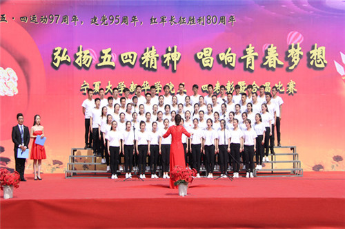 随后,新华学院“新梦”合唱团以一首曲调激昂的《中国军魂》为合唱比赛拉开了序幕。合唱比赛邀请到宁夏大学音乐学院副教授陈宏、祁宝峰,北方民族大学音乐舞蹈学院田丽芬老师以及学院学生处徐长青老师、团委戴巍老师担任评委。来自全院的八支代表队参加了比赛,同学们用嘹亮歌声回顾了党的光辉历程,颂扬党的丰功伟绩,在歌声中赞美青春榜样,宣扬时代使命。由学院舞蹈队带来的舞蹈作品《趁你还年轻》为比赛画上了圆满的句号。经过激烈的角逐,文法外语系一队荣获一等奖,经济与管理科学系一队荣获二等奖,工程与应用科学系二队、信息与计算机科学系一队荣获三等奖。信计系祁轩飙老师、工程系杨文博同学荣获“优秀指挥奖”。